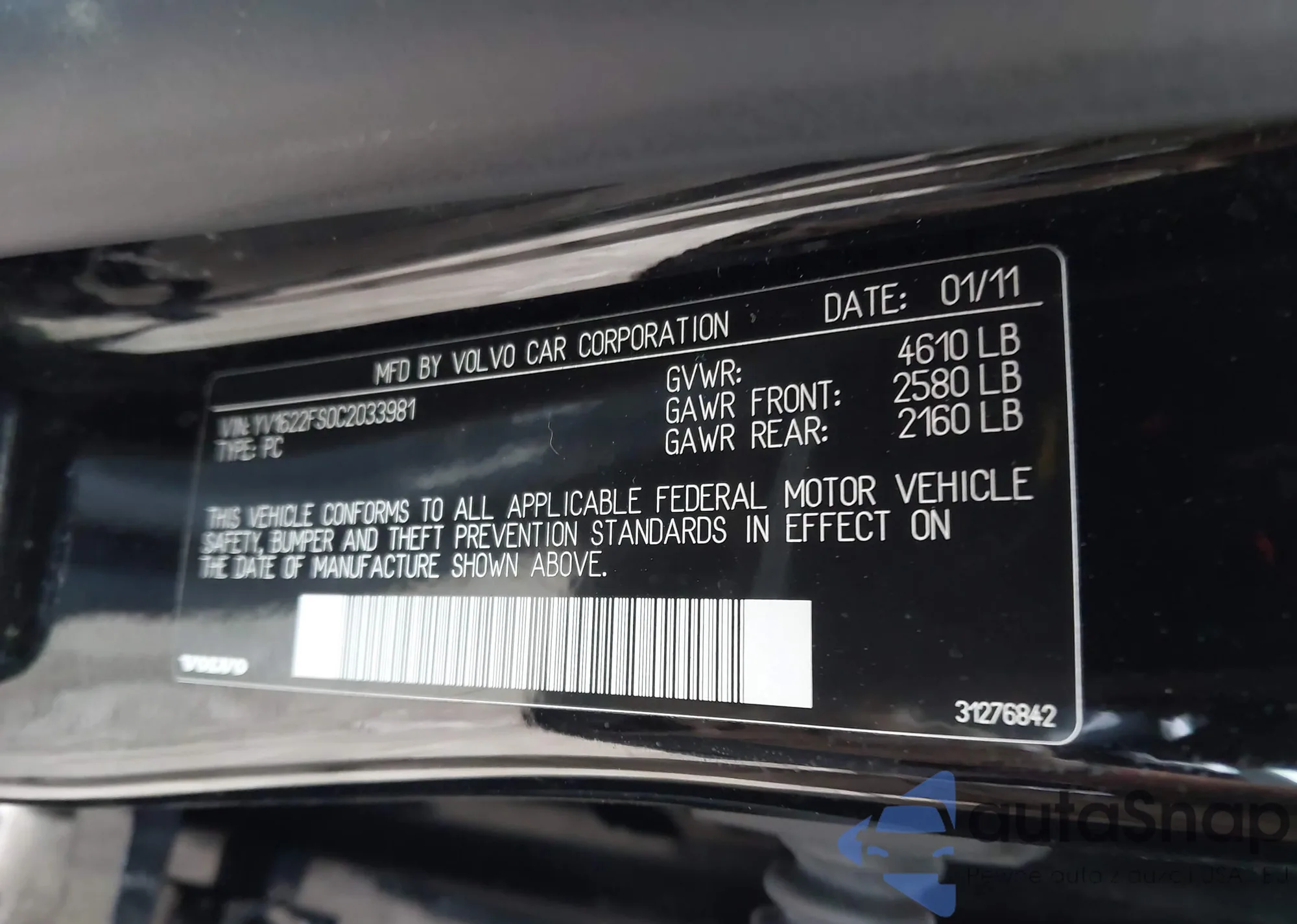 LOT: 41715898 VIN: YV1622FS0C2033981