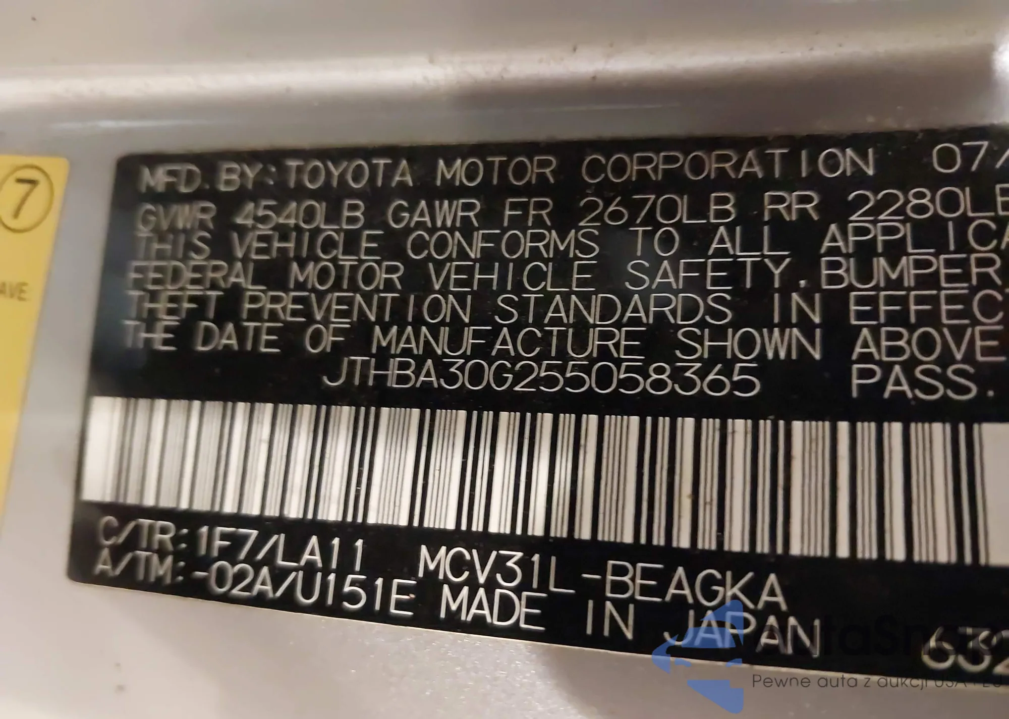 LOT: 41505632 VIN: JTHBA30G255058365