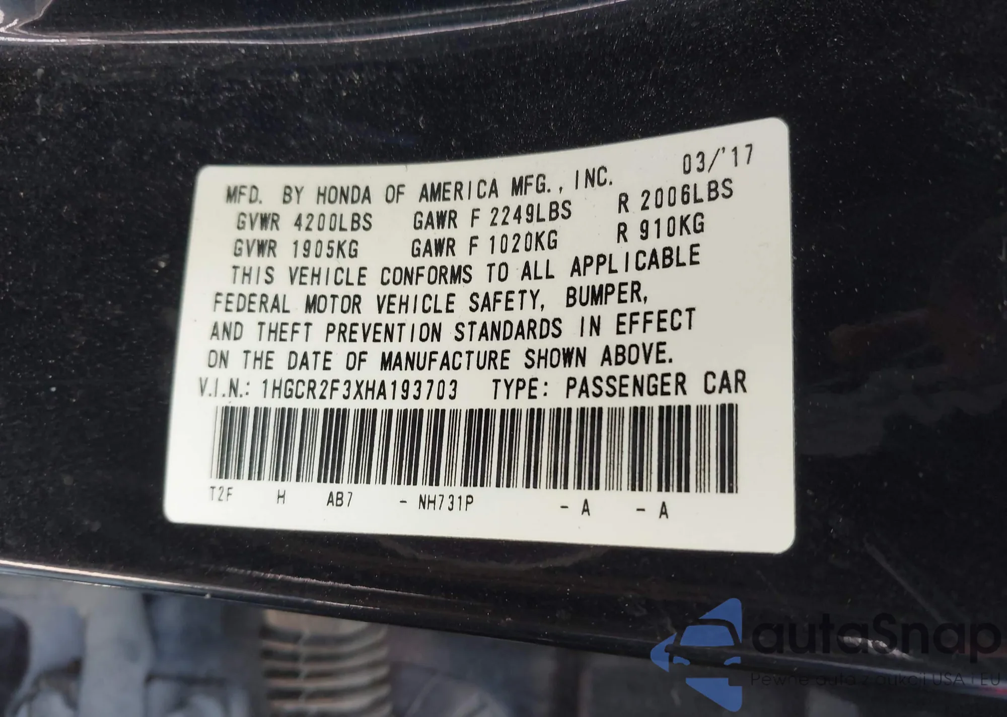 • VIN 1HGCR2F58EA030979