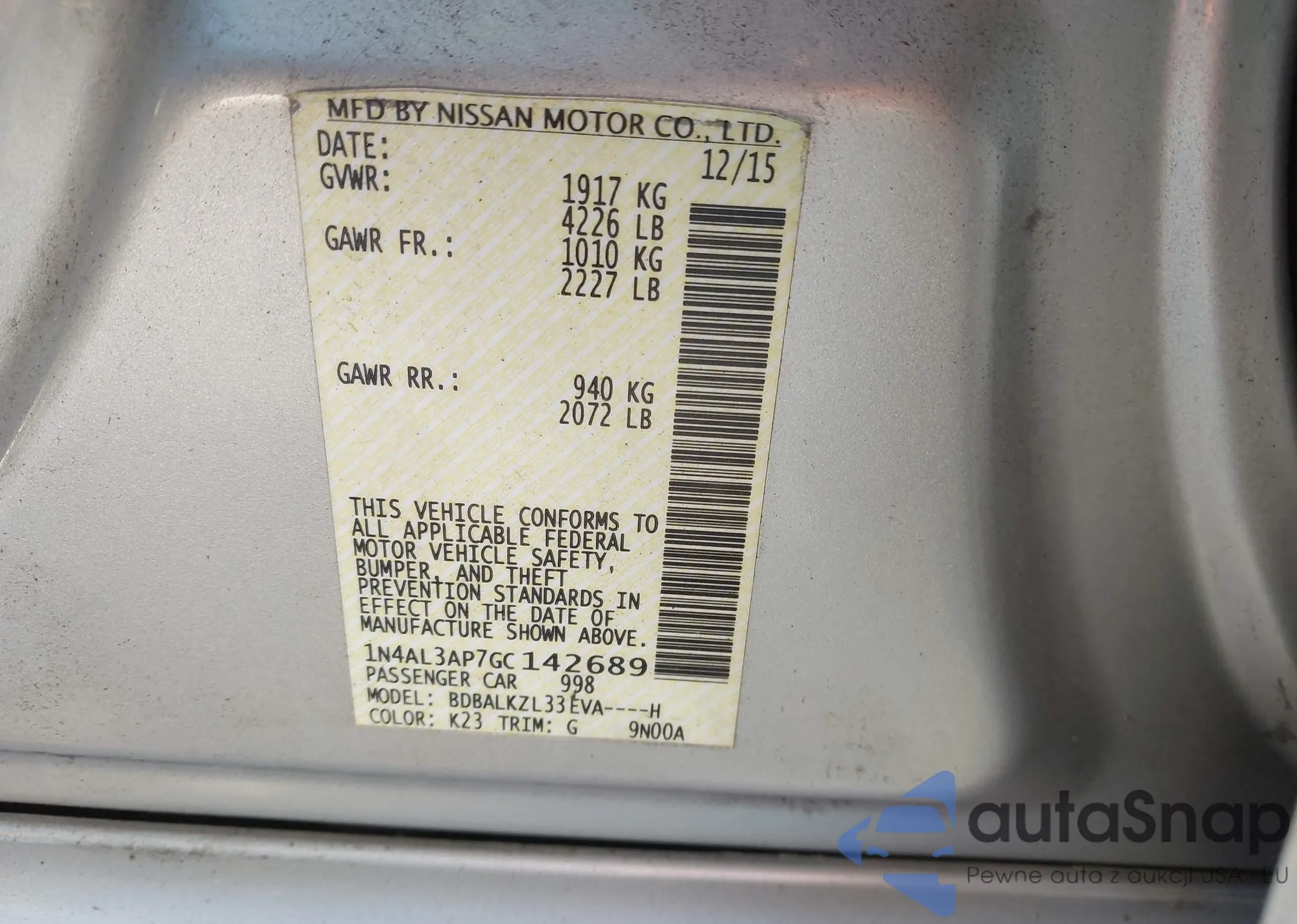 LOT: 41826907 VIN: 1N4AL3AP7GC142689