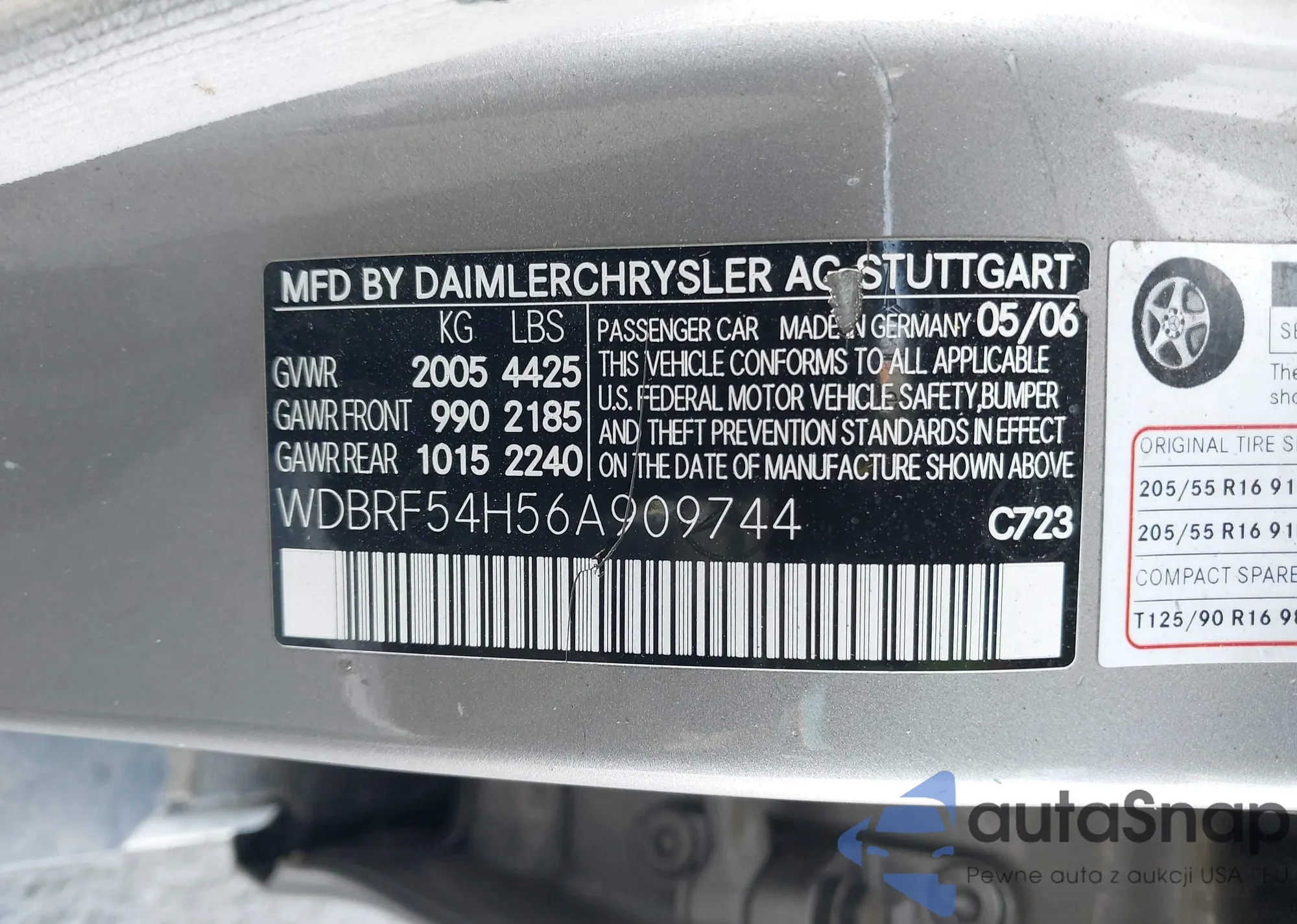 • VIN WDBRF54H56A909744