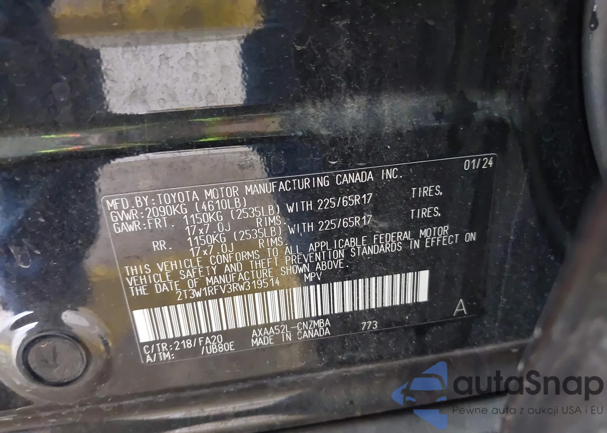 • VIN 2T3W1RFV3RW319514