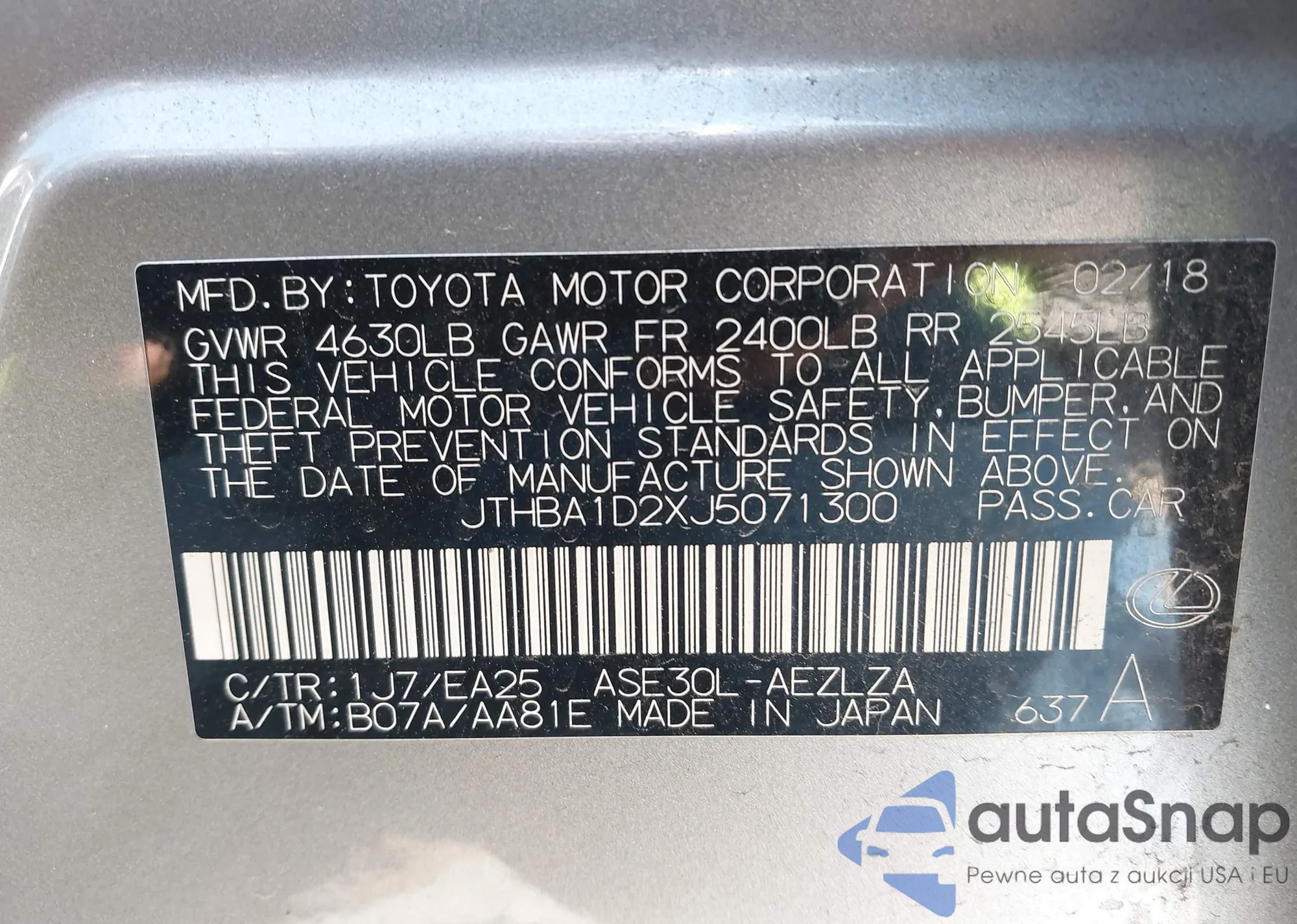 LOT: 41929611 VIN: 1G1FY6S01N4125505