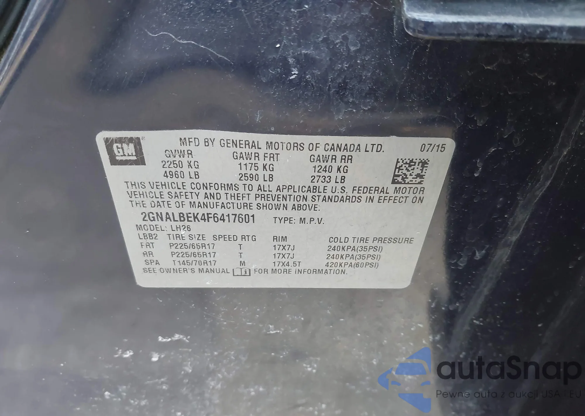 • VIN 2GNALBEK4F6417601