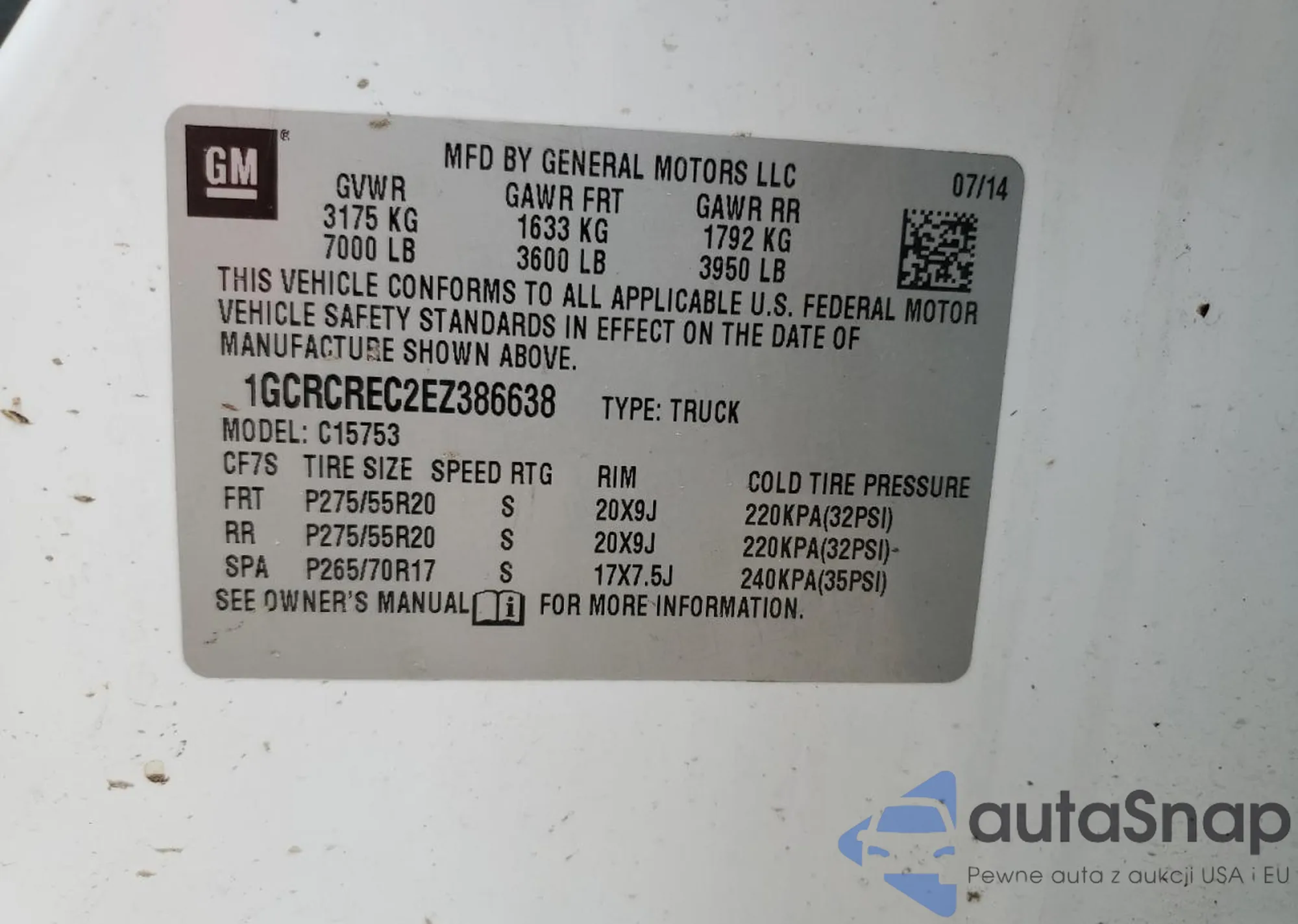 LOT: 50213085 VIN: 1GCRCREC2EZ386638