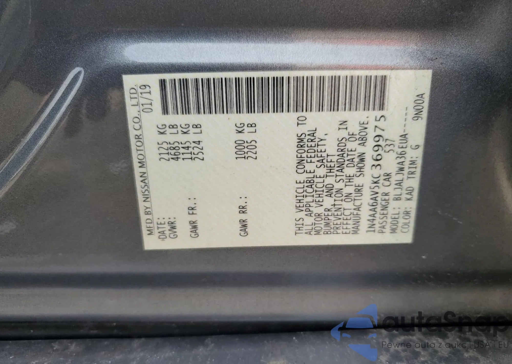 LOT: 51312515 VIN: JN1EV7ARXJM442004