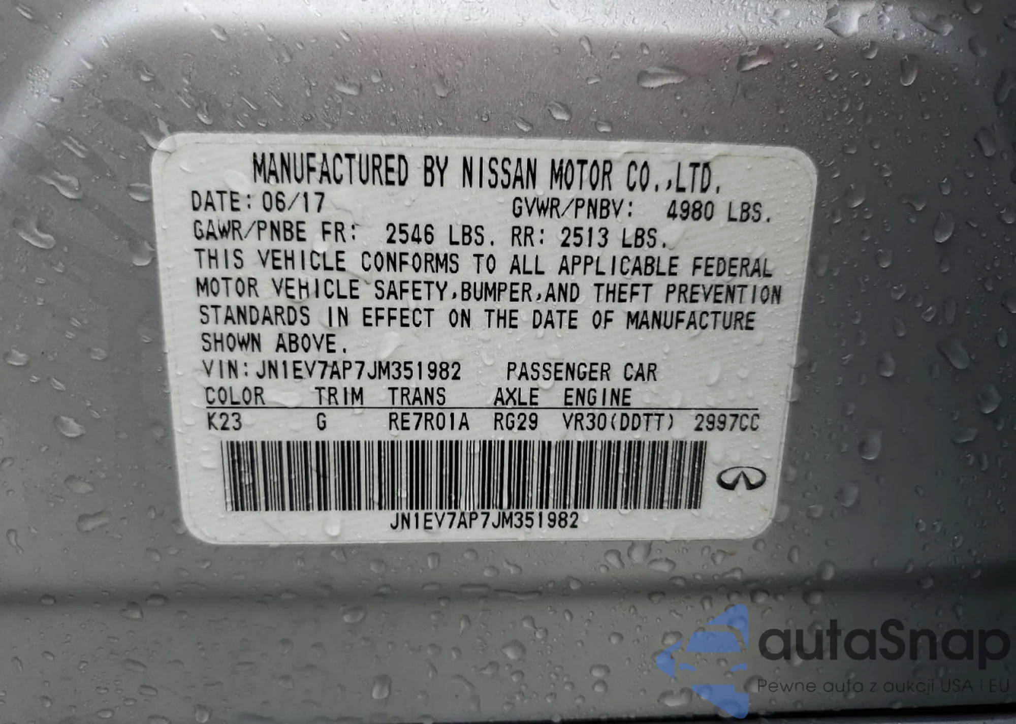 LOT: 42944335 VIN: JN1EV7AP7JM351982