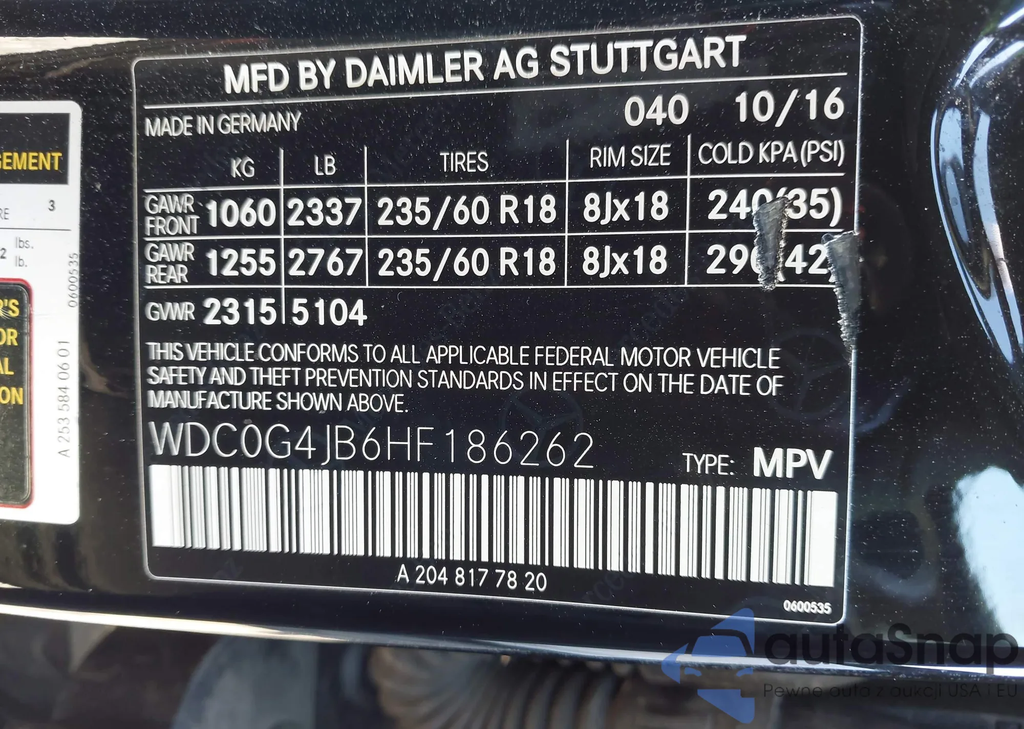 • VIN WDC0G4JB6HF186262