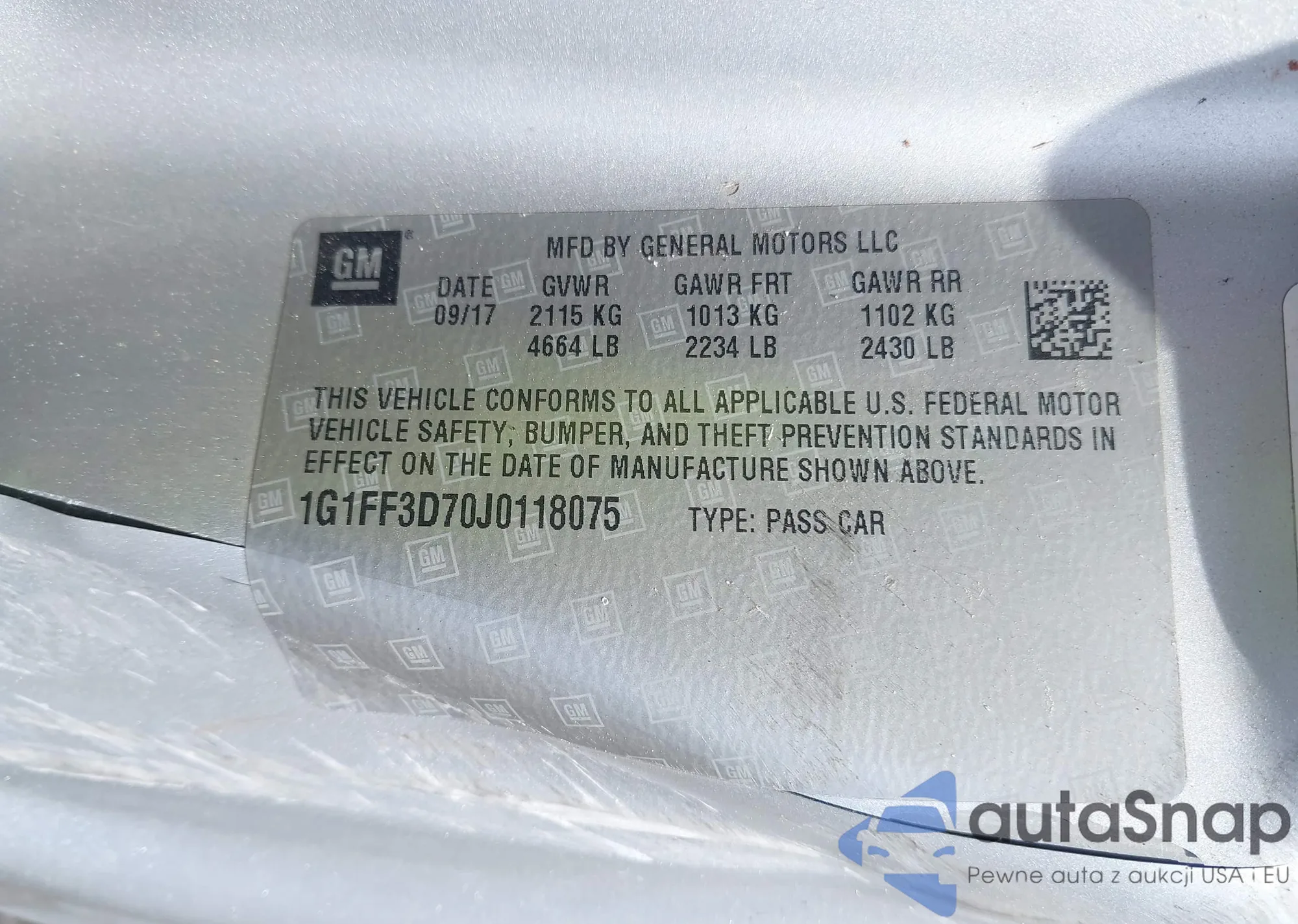 • VIN 1G1FF3D70J0118075