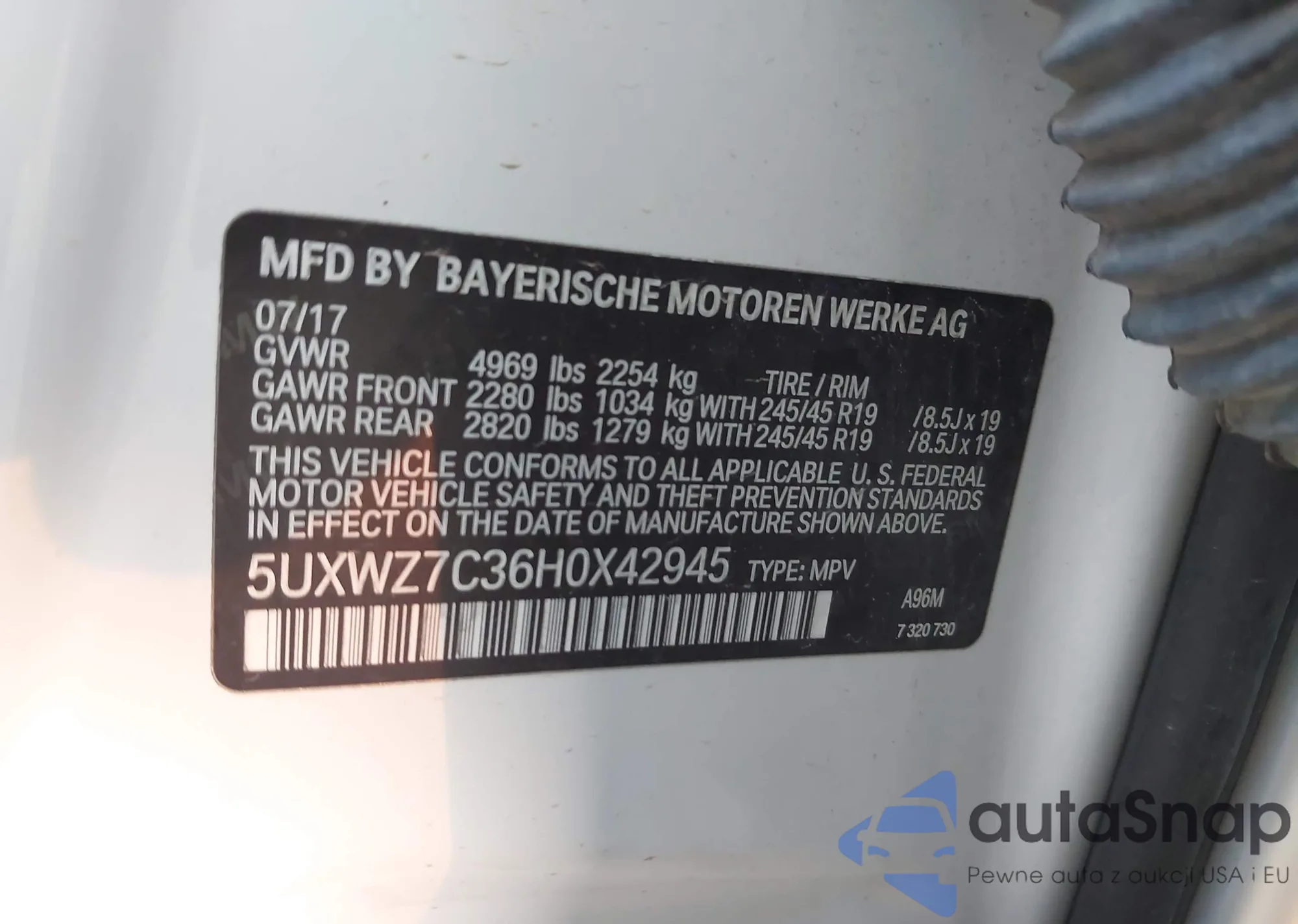 • VIN 5UXWZ7C36H0X42945