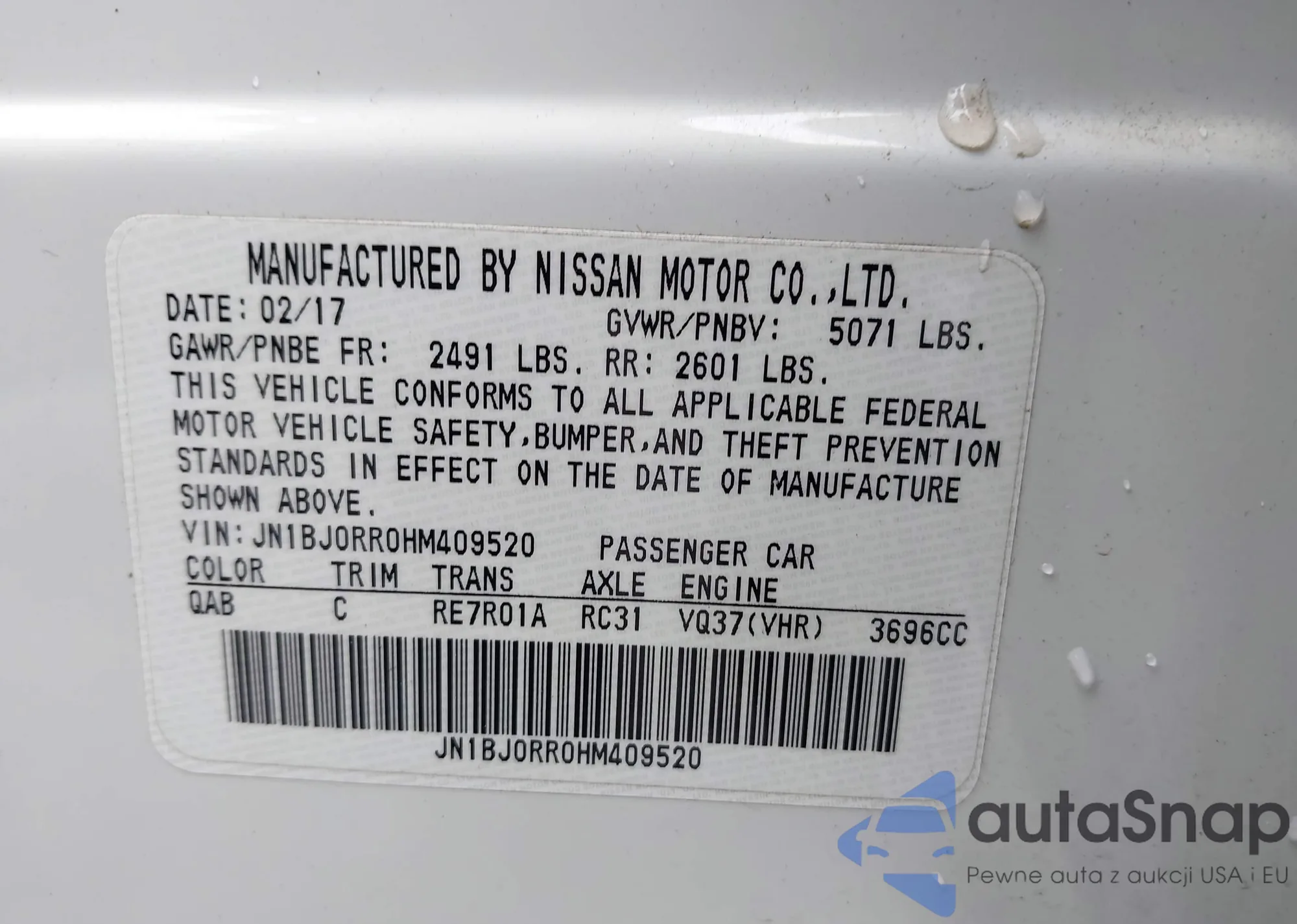 LOT: 41998247 VIN: JN1BJ0RR0HM409520