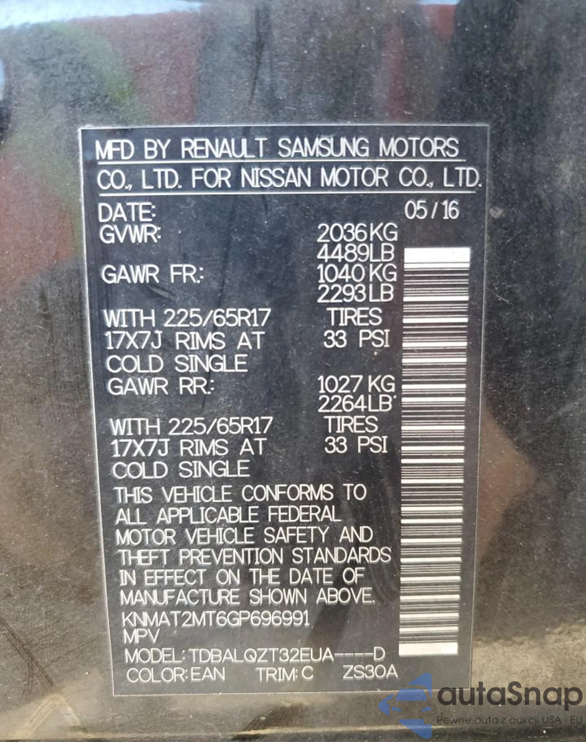 • VIN KNMAT2MV4JP516349