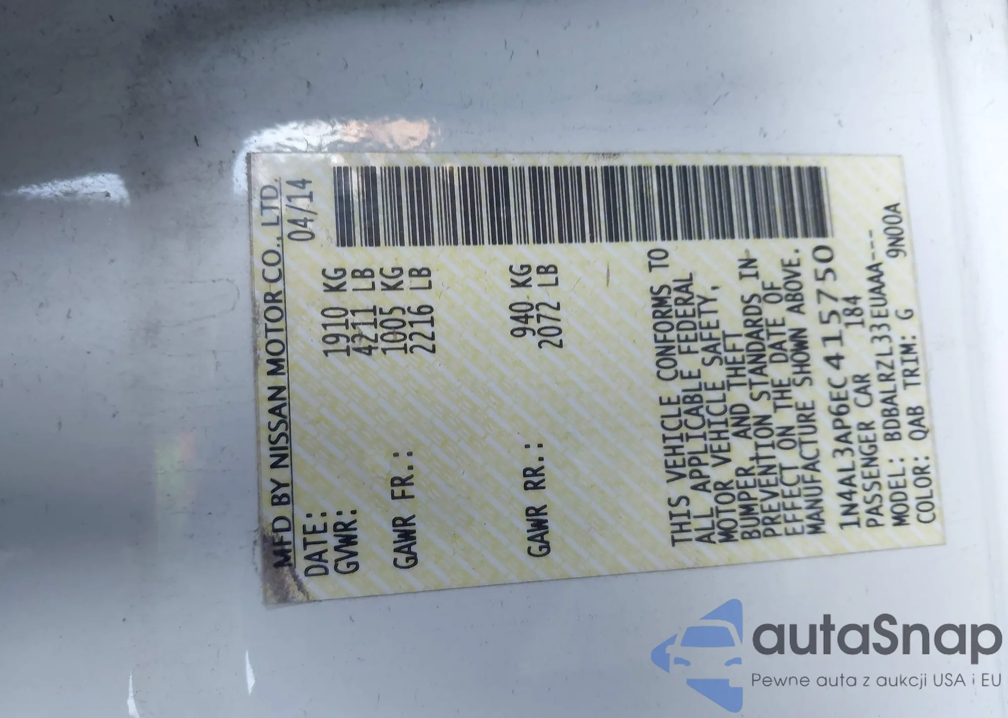 LOT: 41869726 VIN: 1N4AL3AP6EC415750