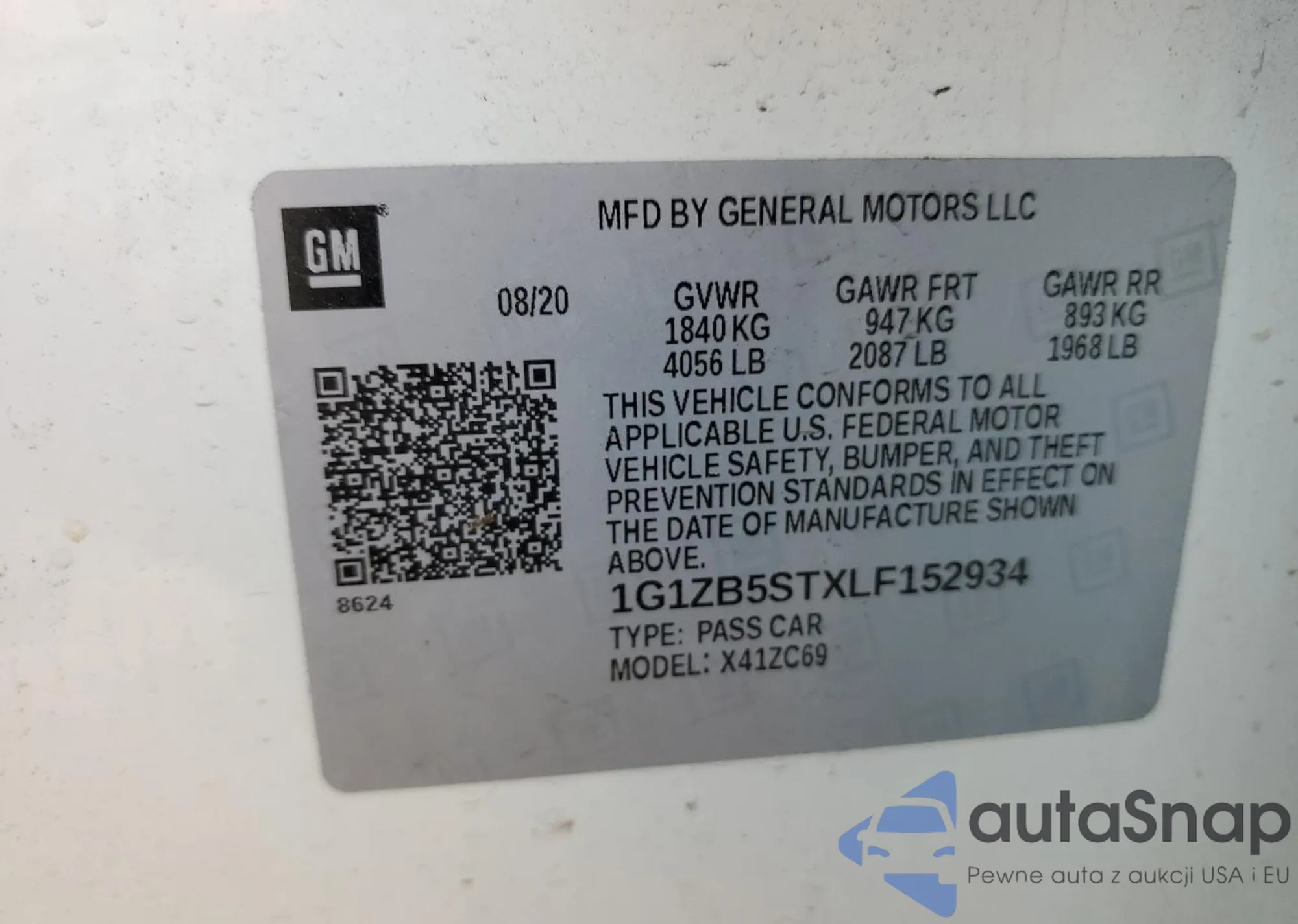 • VIN 1G1ZB5STXLF152934