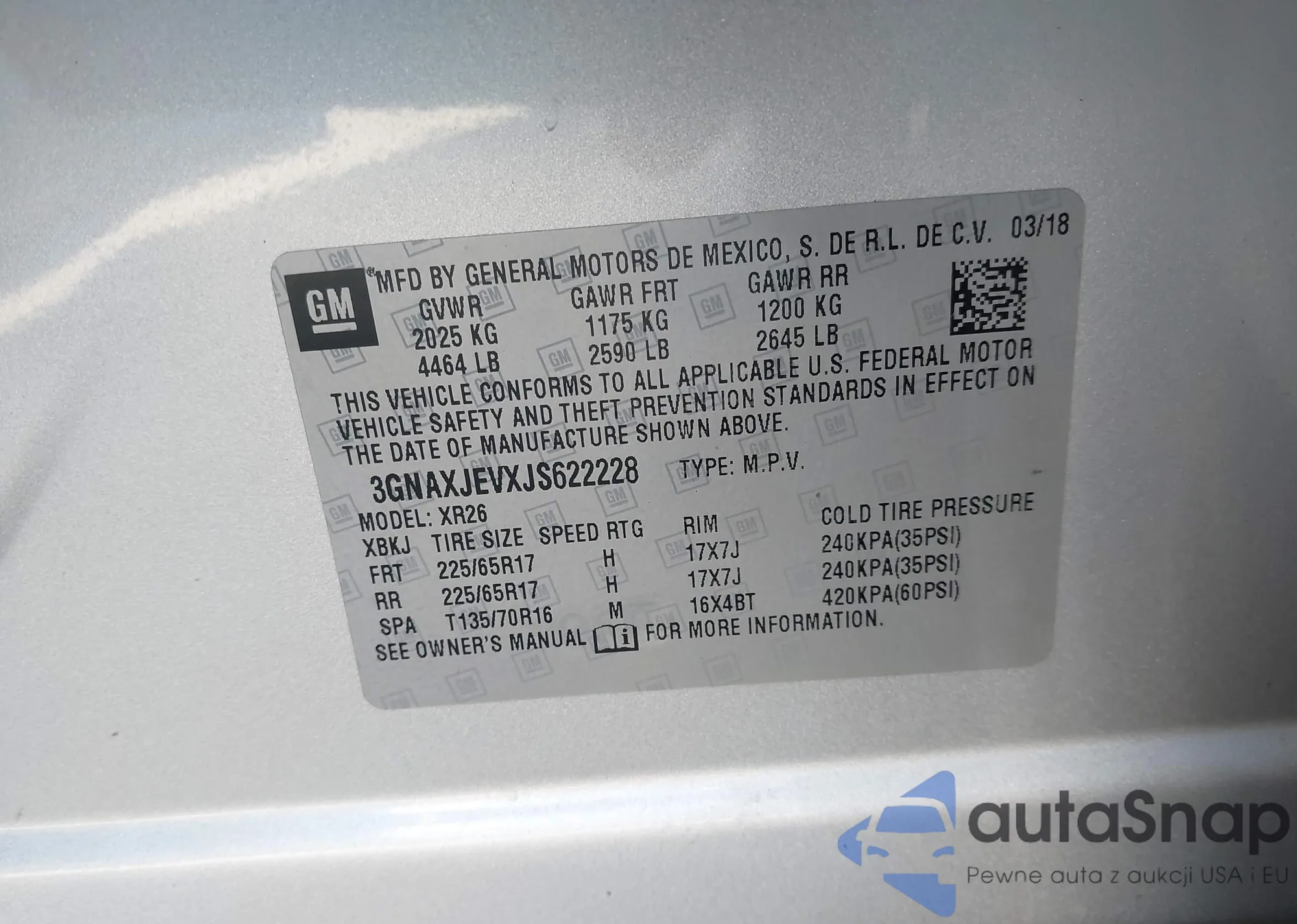 LOT: 39256772 VIN: 3VV3B7AX0JM133899