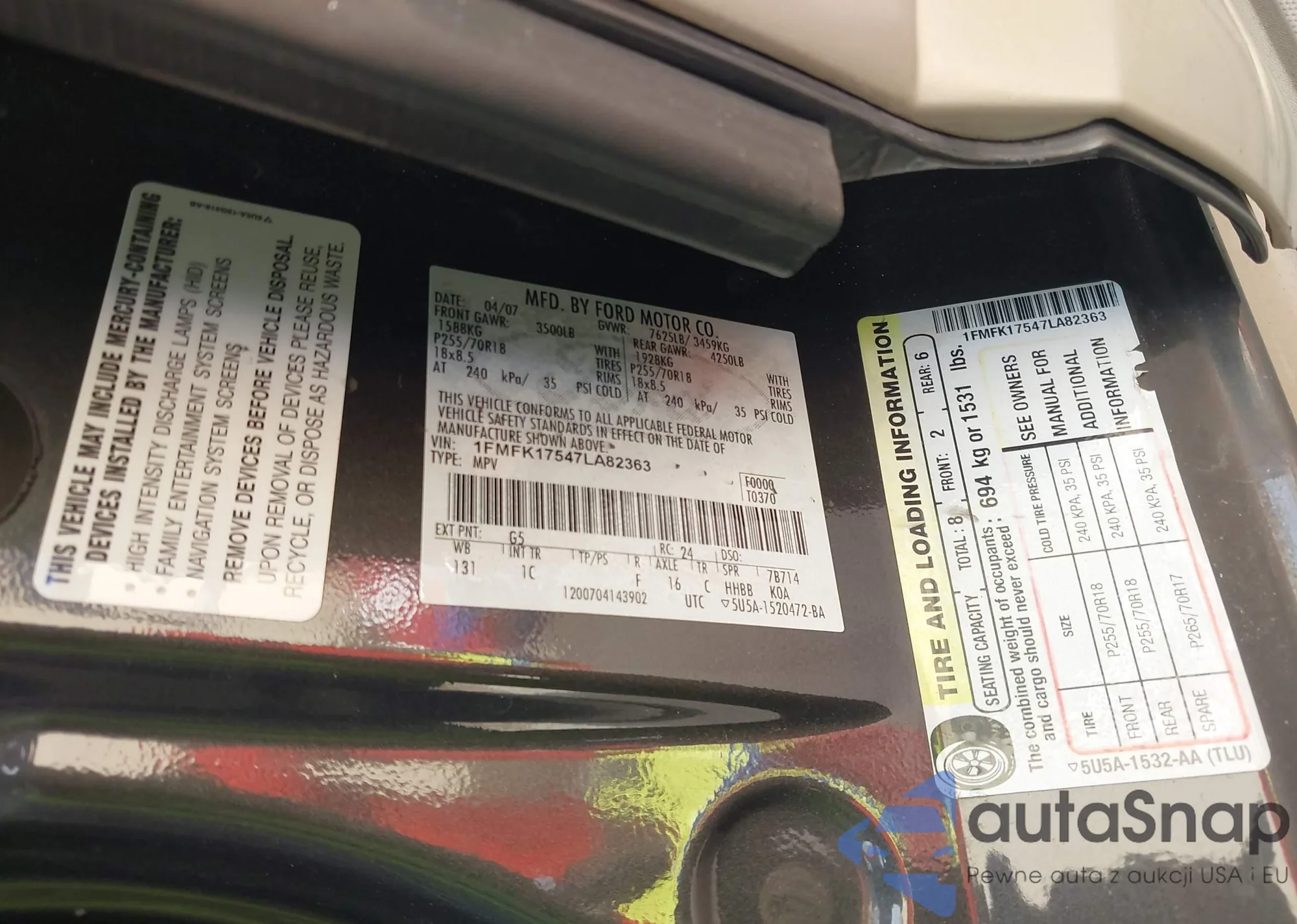 • VIN 1FMFK17547LA82363