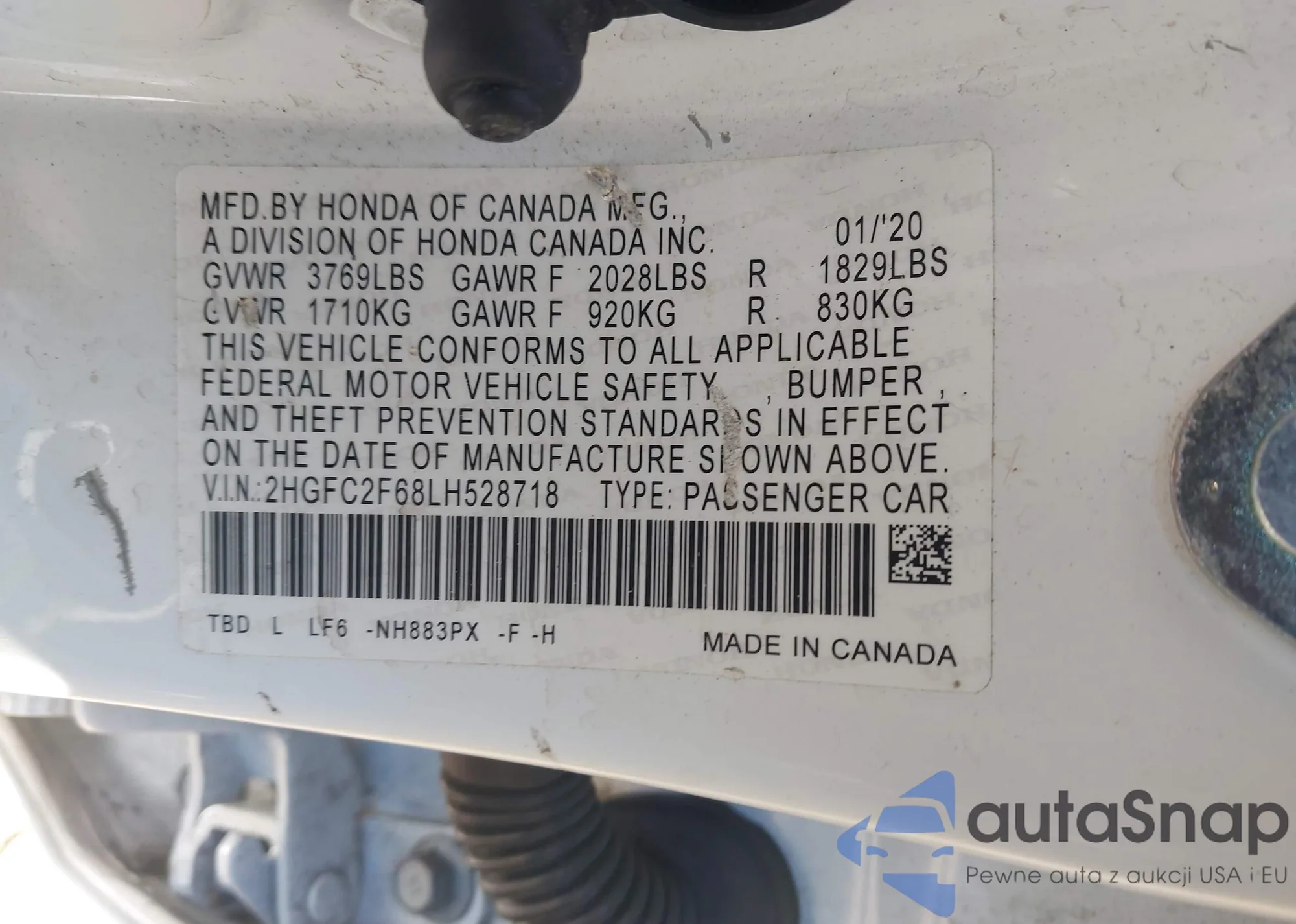 LOT: 40259217 VIN: 2HGFC2F68LH528718