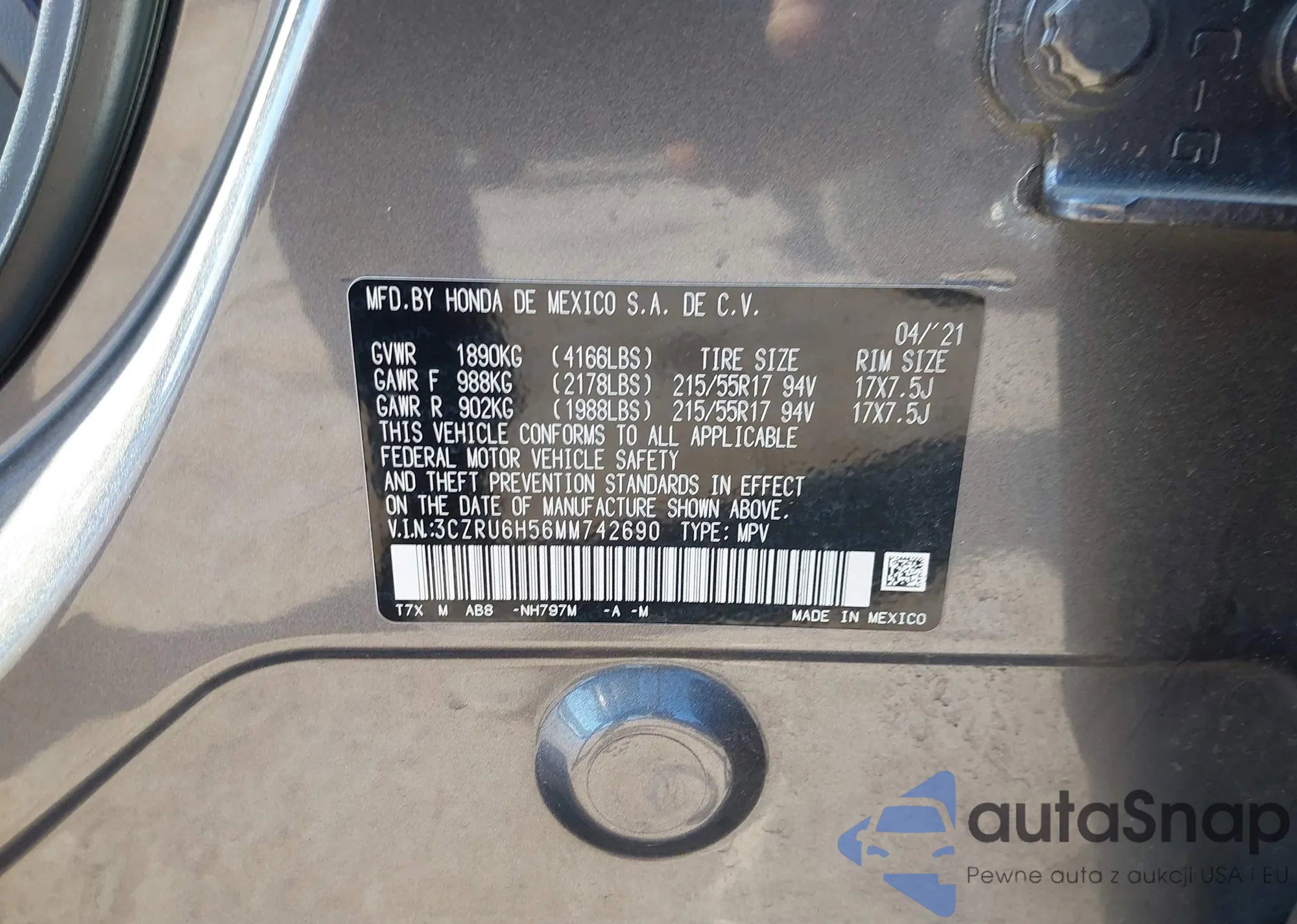 • VIN 3CZRU6H56MM742690
