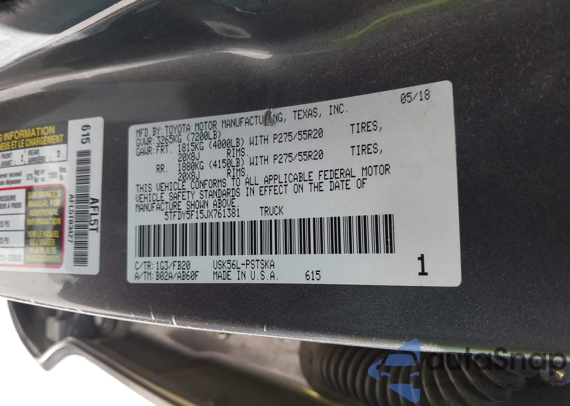 • VIN 5TFDY5F15JX761381