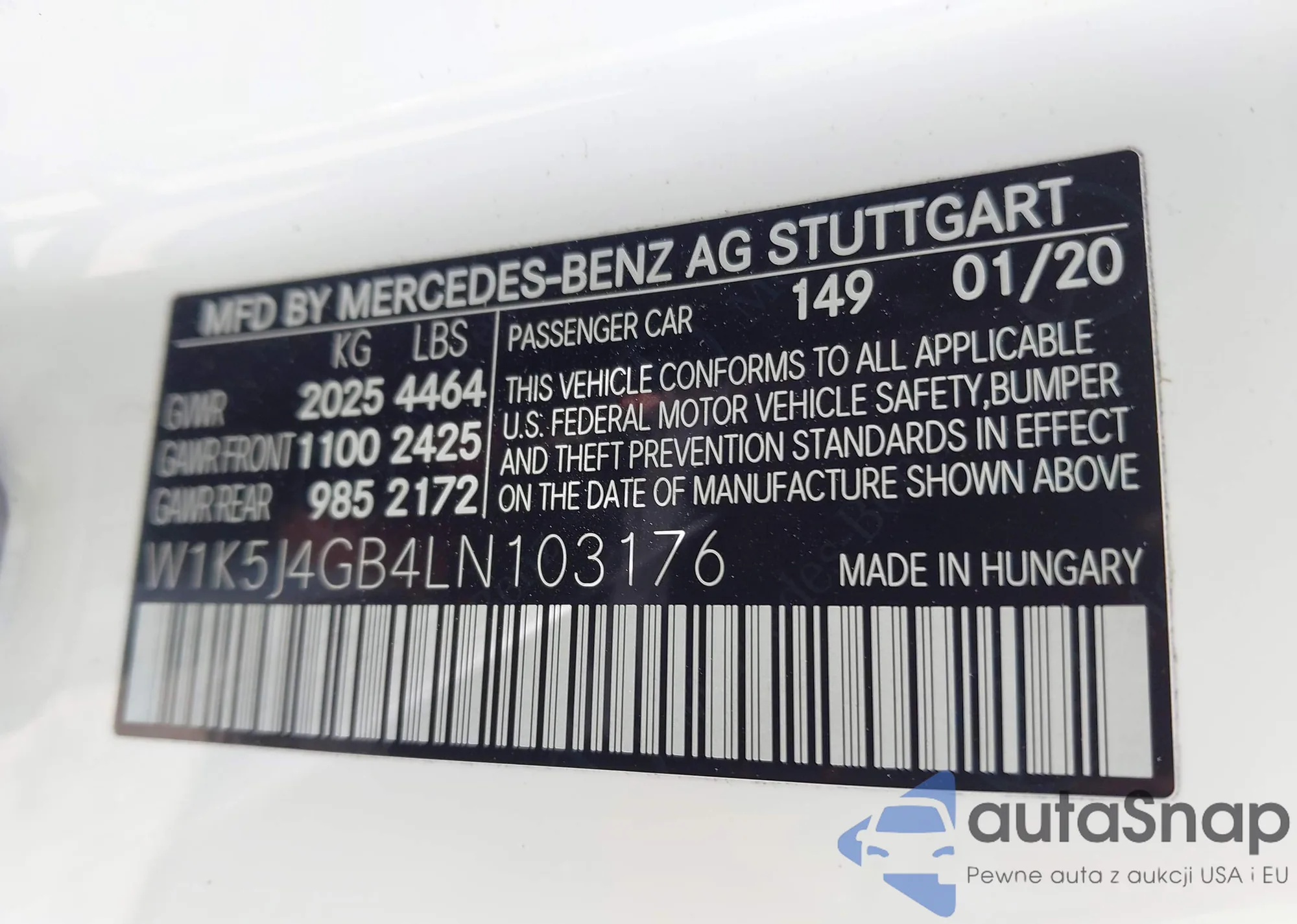 • VIN W1K5J4GB4LN103176