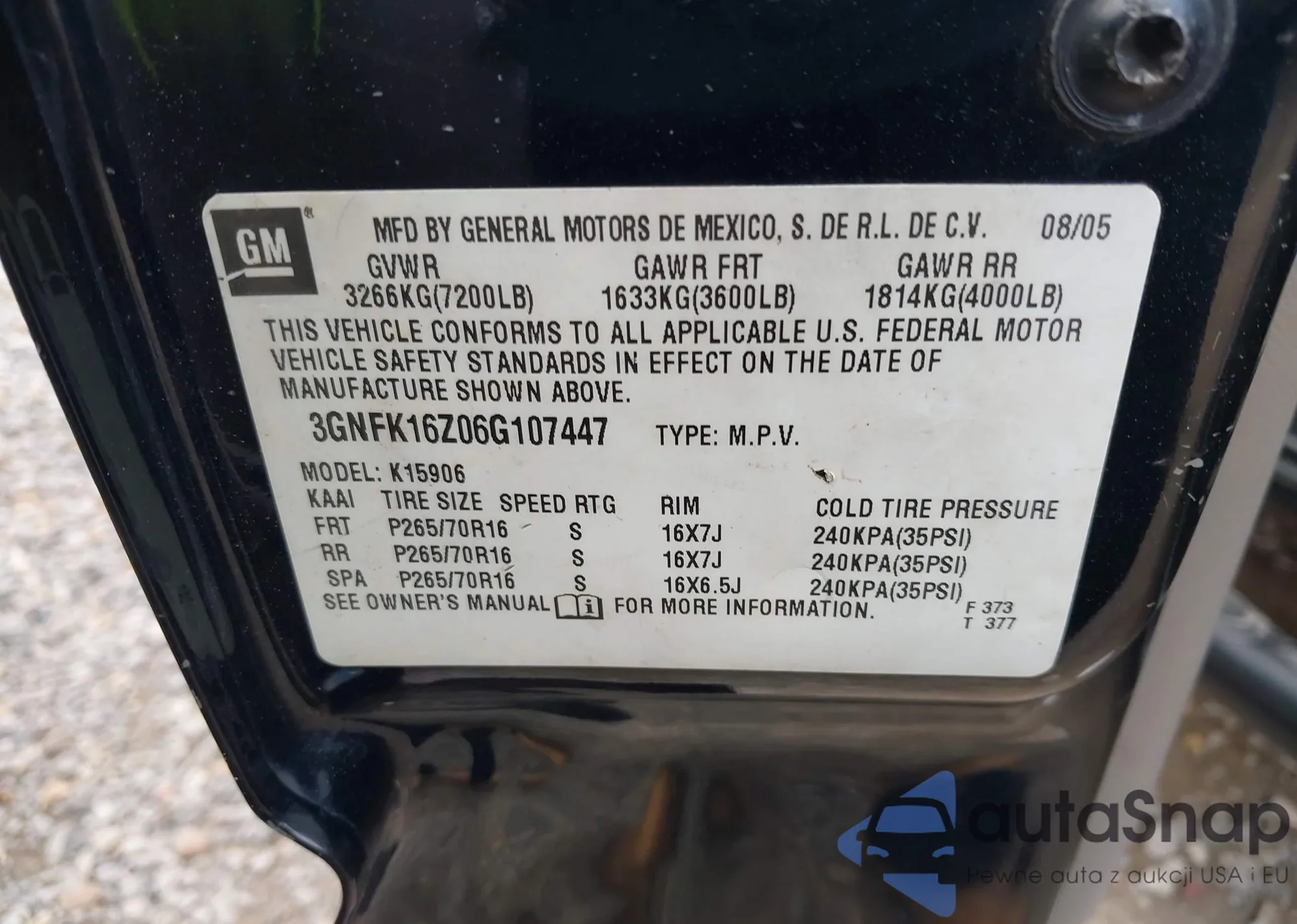 • VIN 3GNFK16Z06G107447