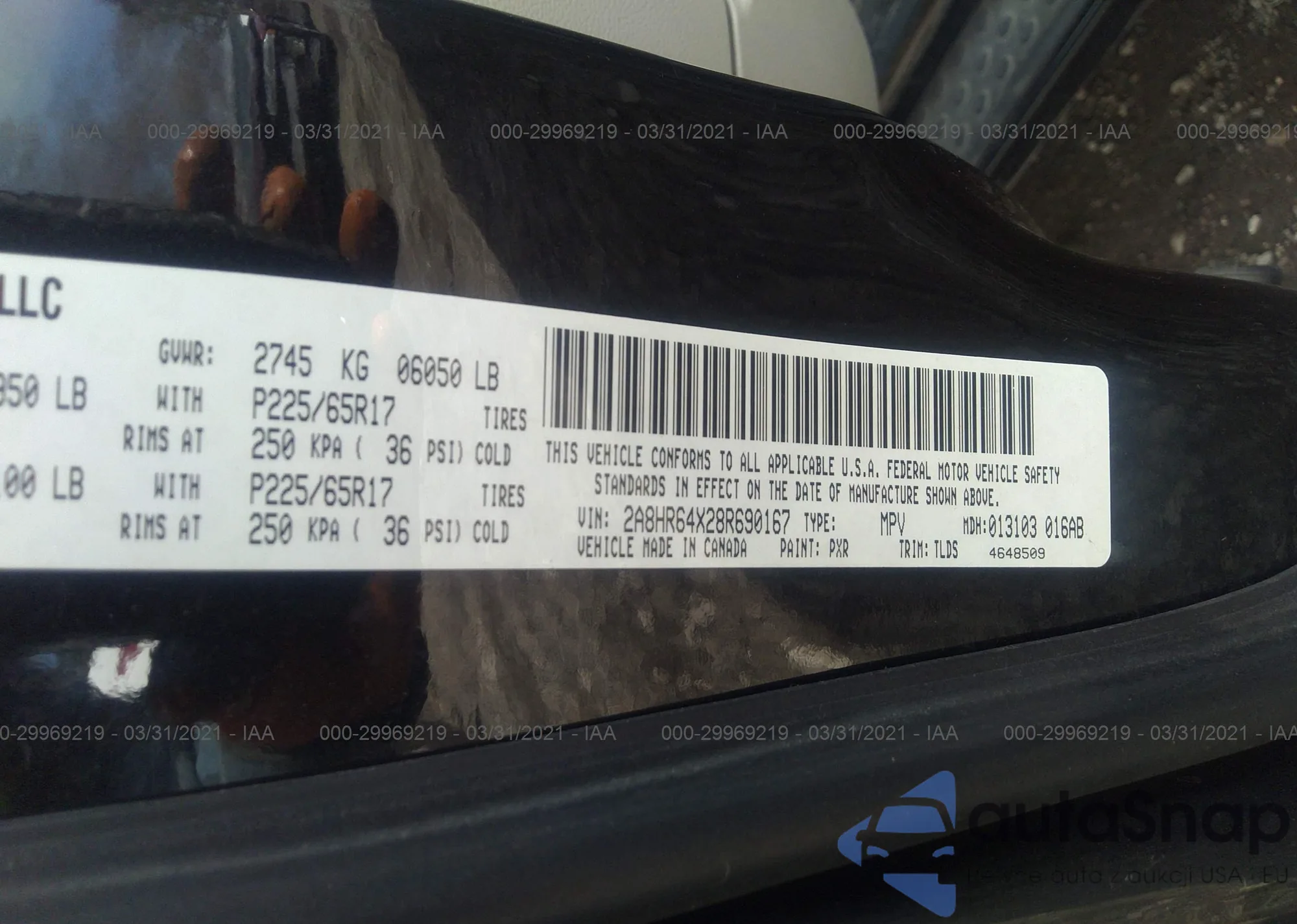 LOT: 29969219 VIN: 2A8HR64X28R690167