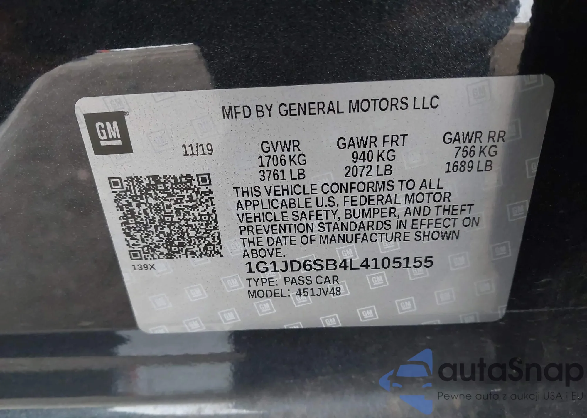 LOT: 41166074 VIN: 1G1JD6SB4L4105155
