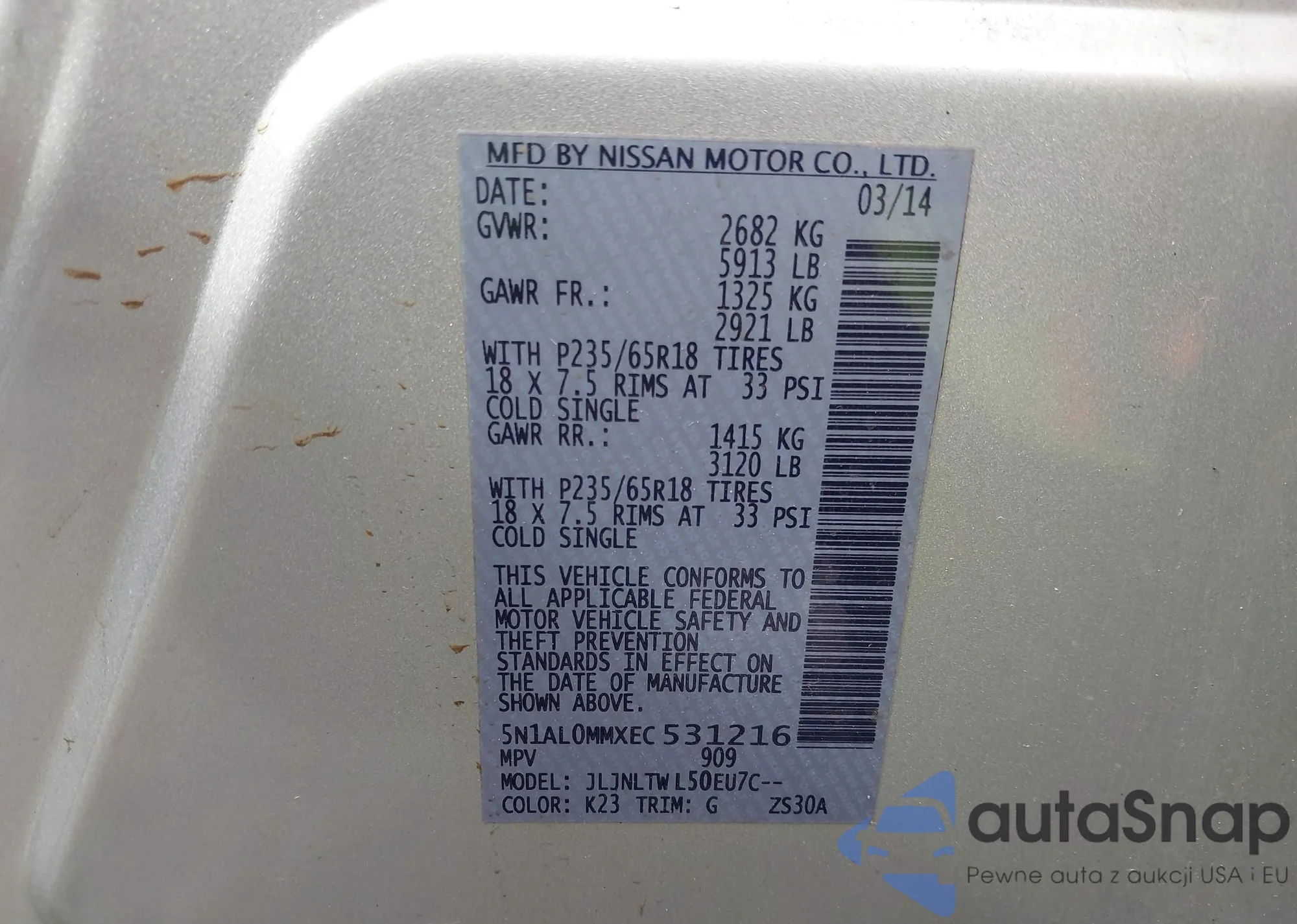 • VIN JN8AZ1MU3BW062834