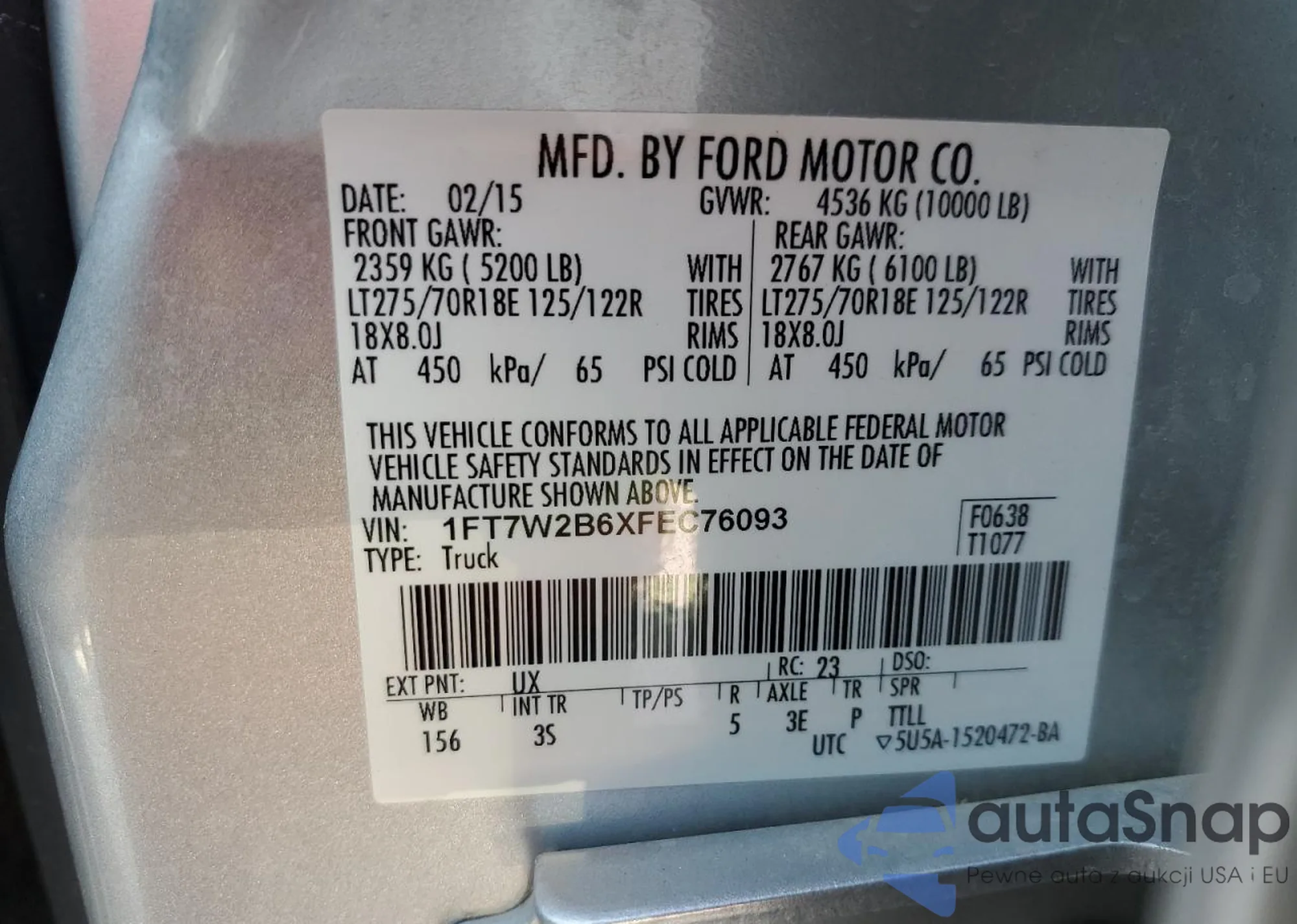 LOT: 63475664 VIN: 1FTRW08LX2KE18898
