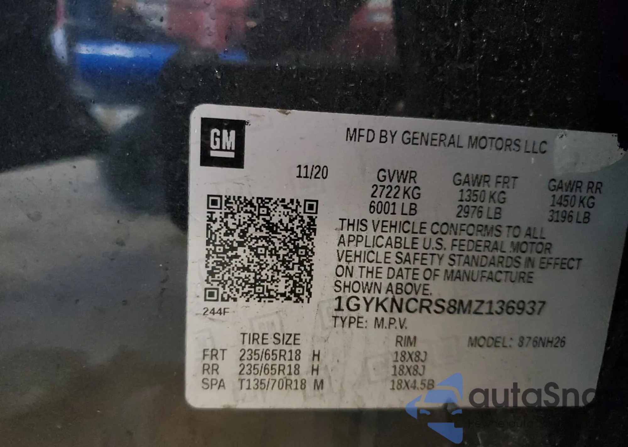 LOT: 50959105 VIN: 1GYKNCRS8MZ136937