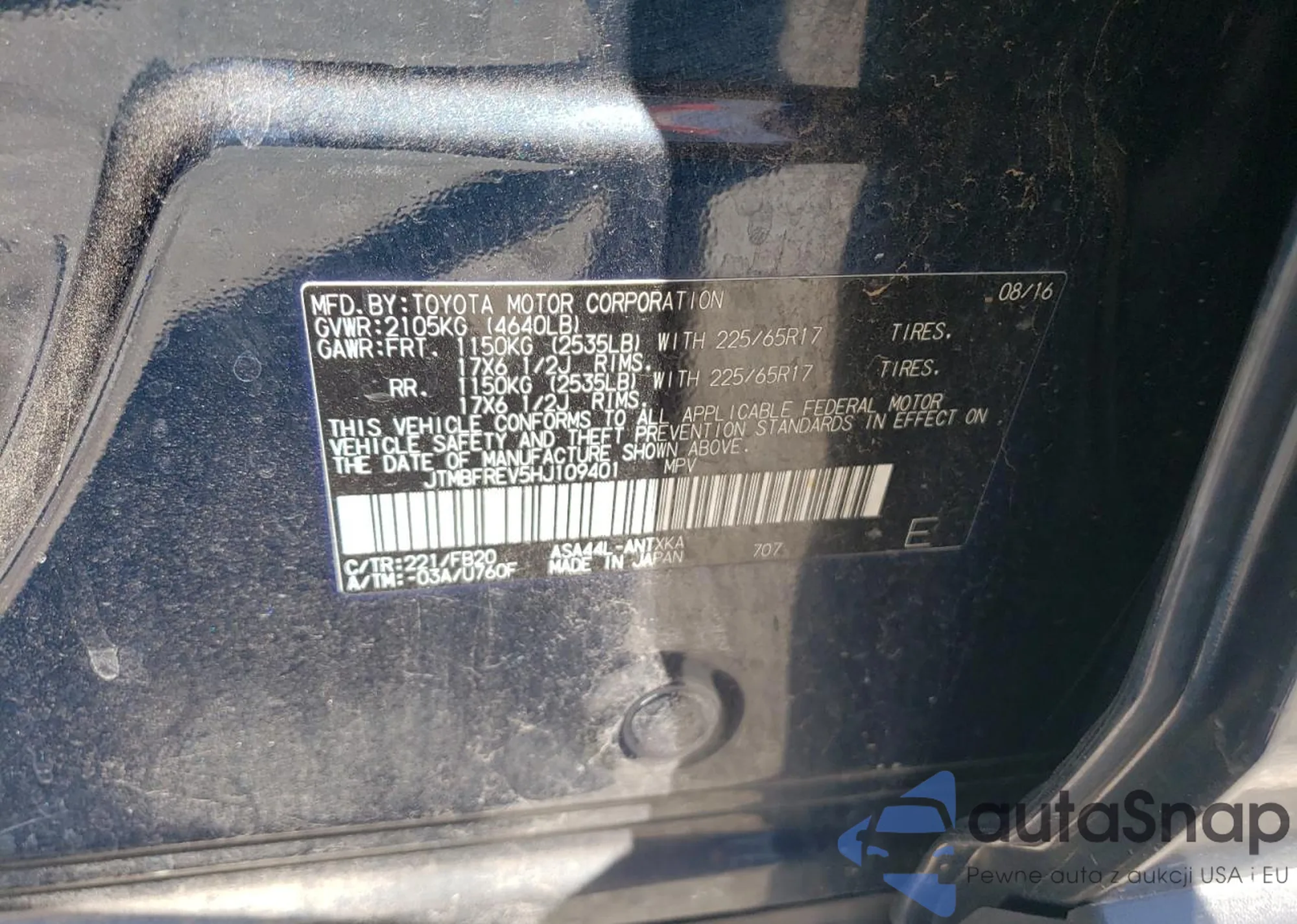 LOT: 52495755 VIN: KMHD84LF7HU195385