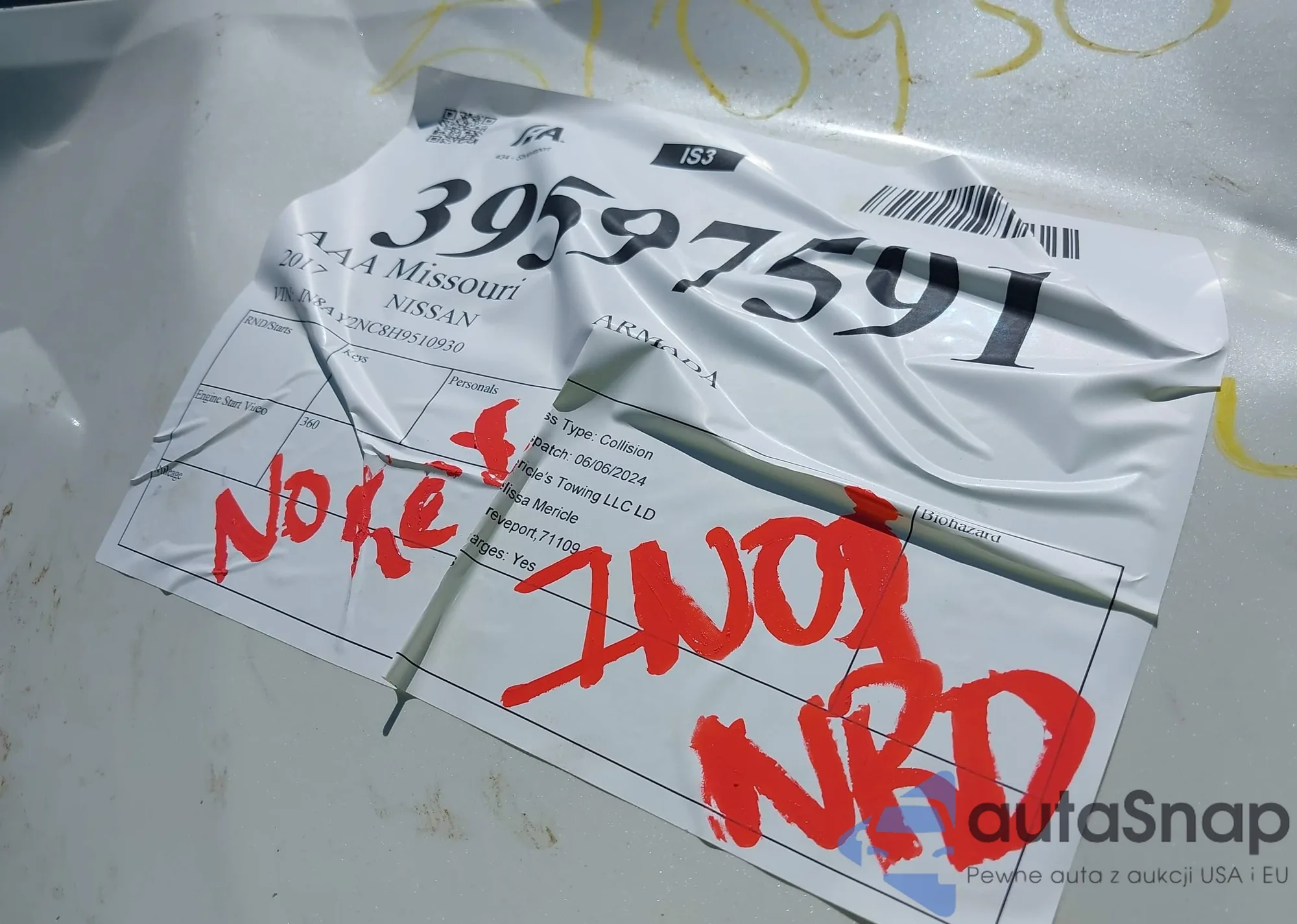 LOT: 39597591 VIN: JN8AY2NC8H9510930