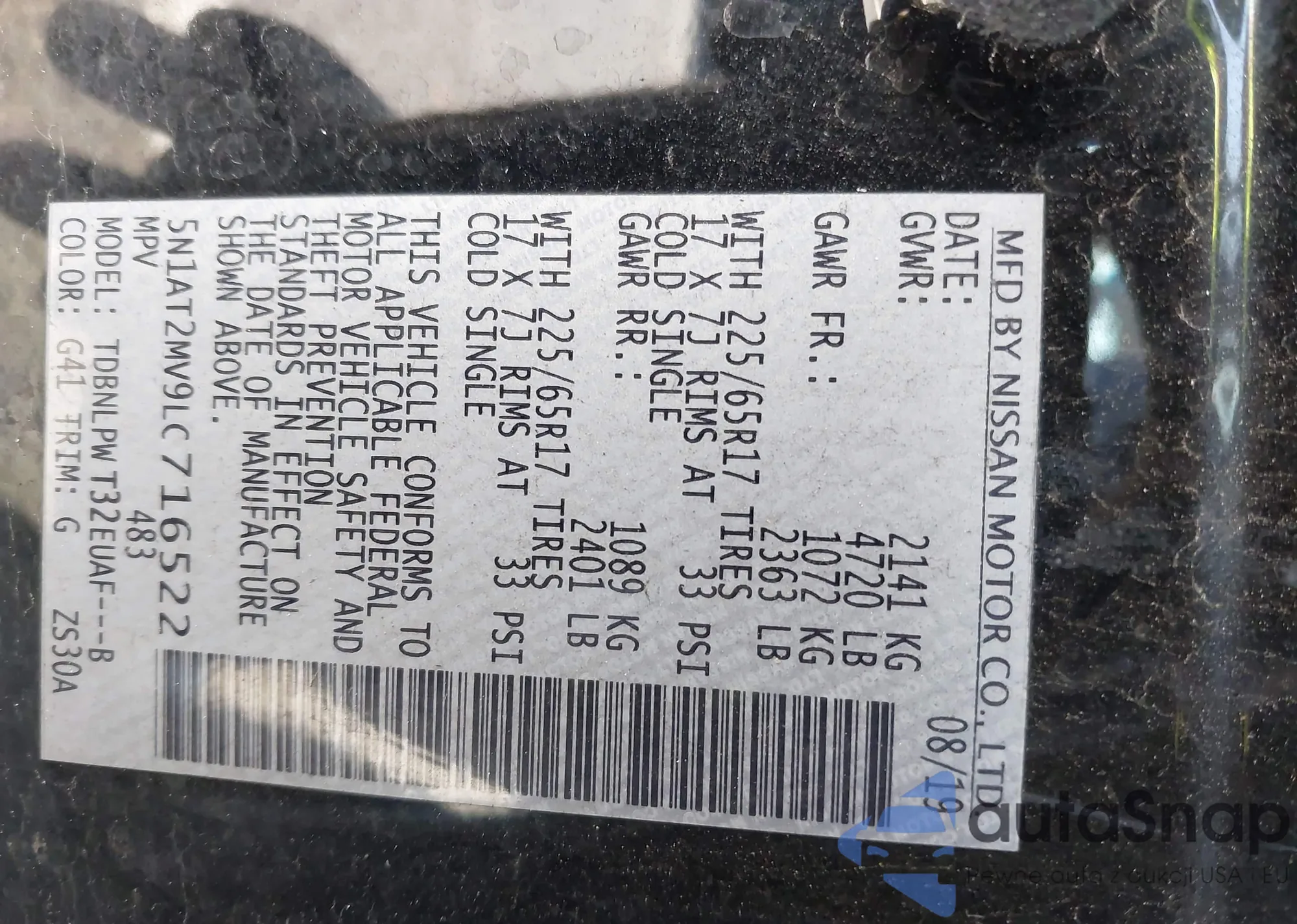 LOT: 42049159 VIN: 5N1AT2MV9LC716522
