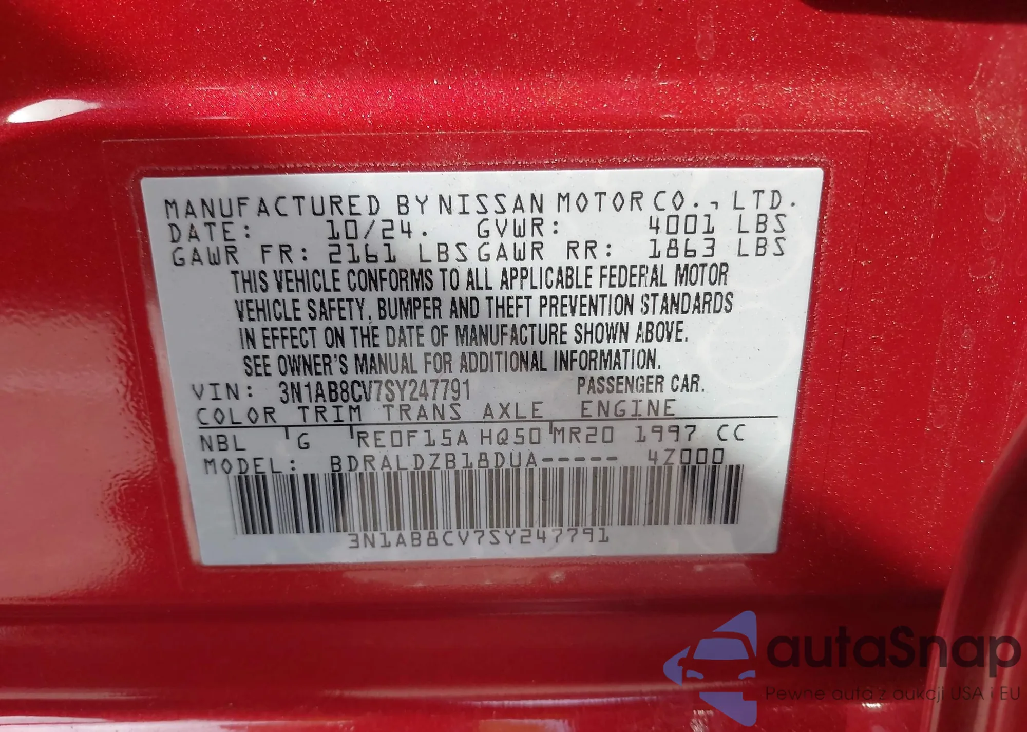 • VIN 3N1AB8CV7SY247791