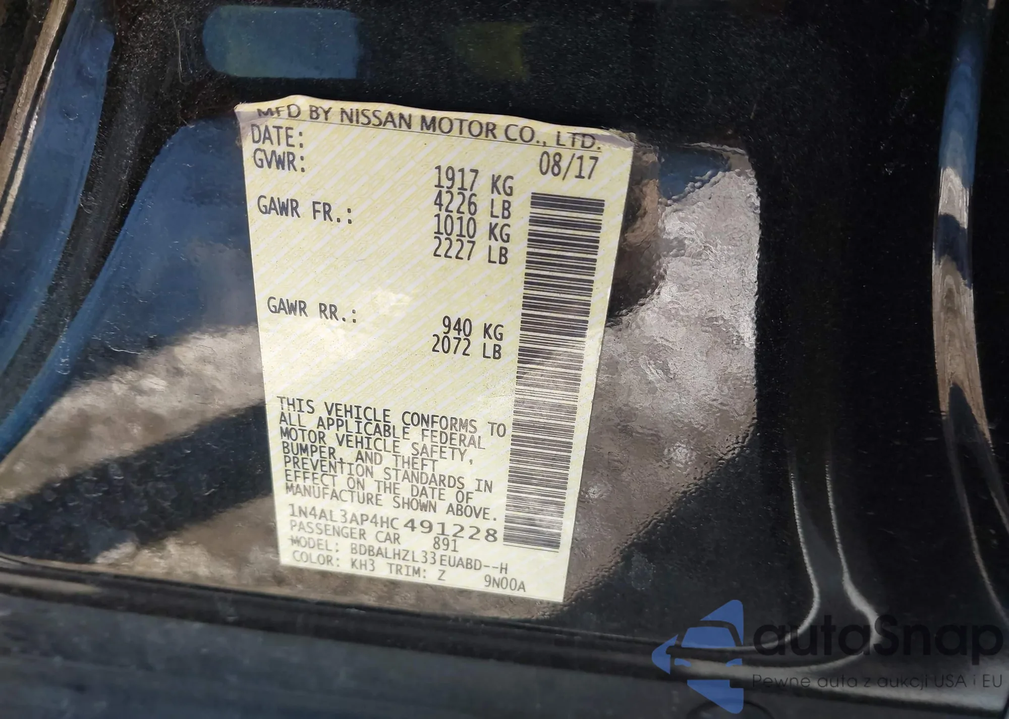 • VIN 1N4AL3AP4HC491228