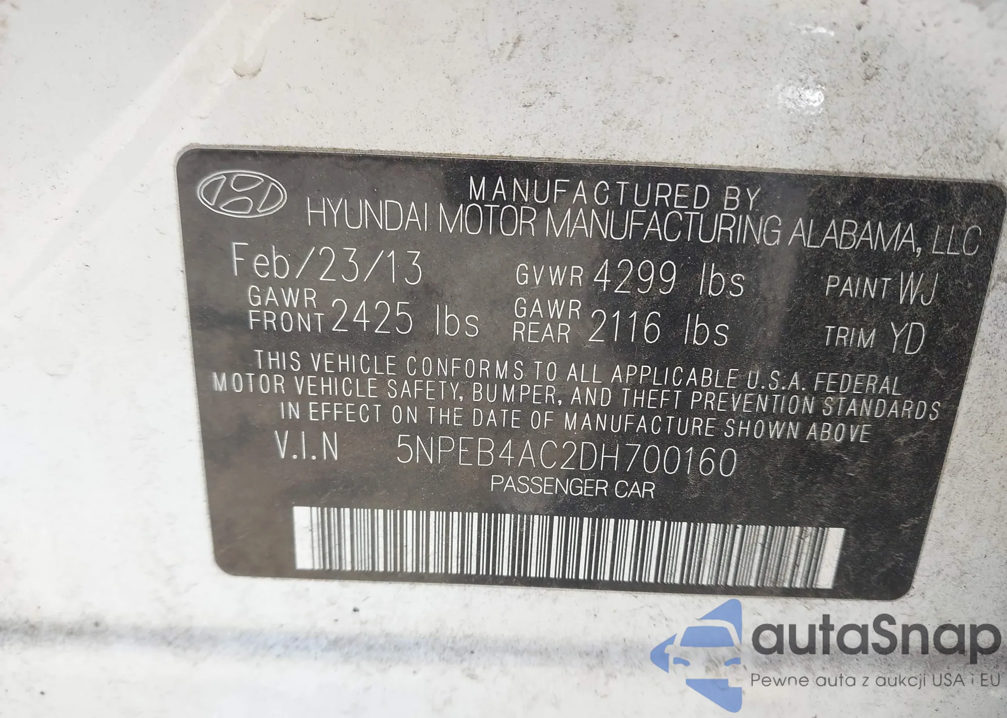 • VIN 1N4AL3AP8DC141532