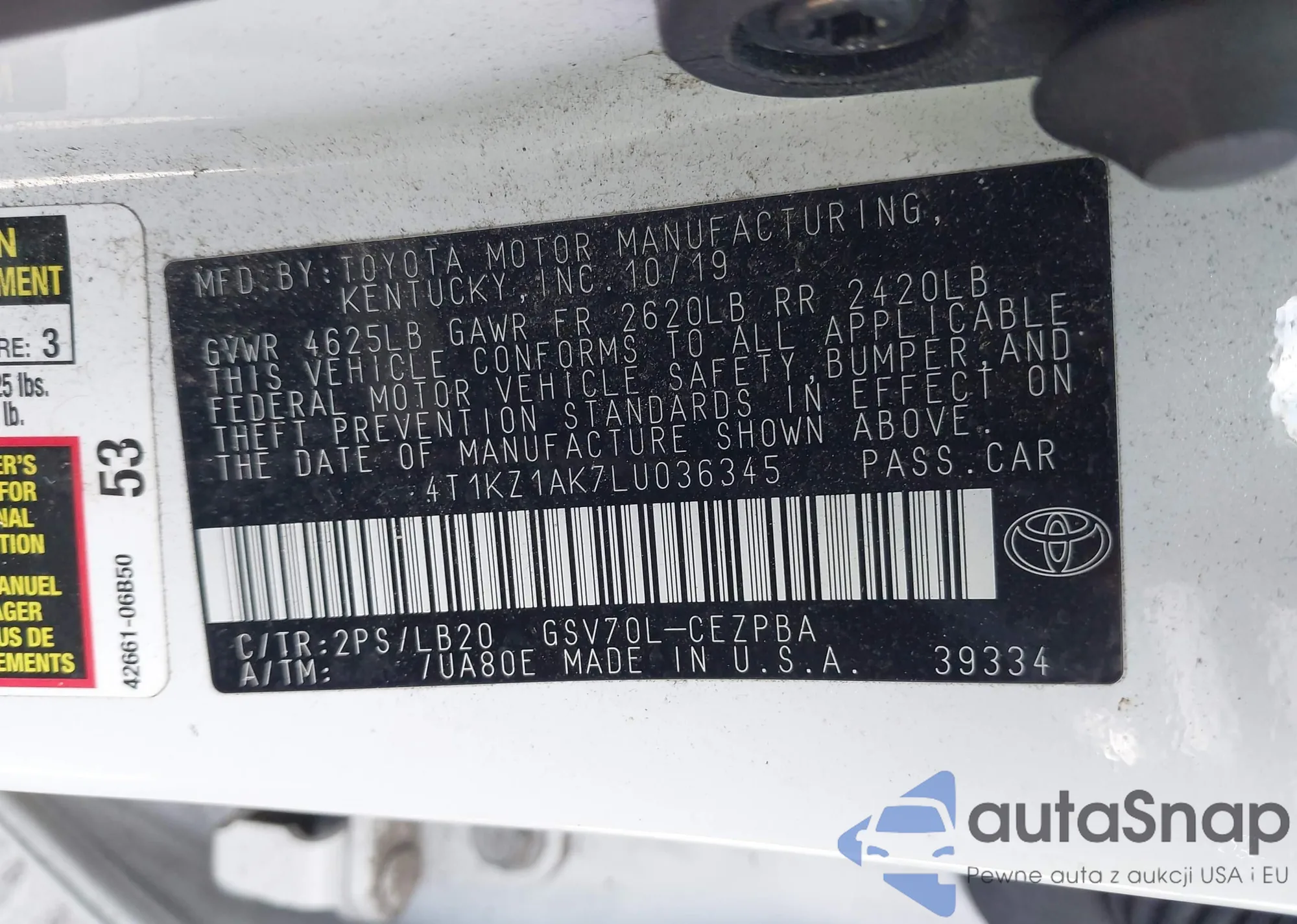 • VIN 4T1KZ1AK7LU036345