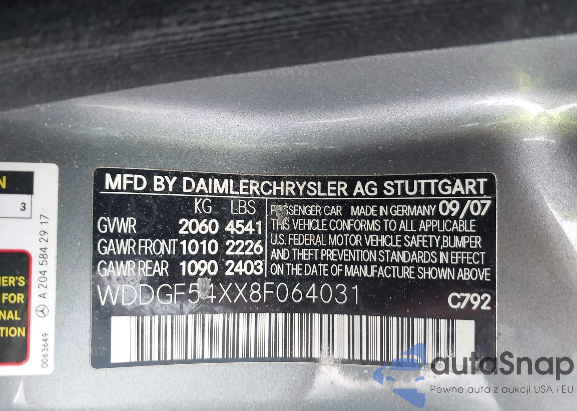 • VIN WDDGF54XX8F064031