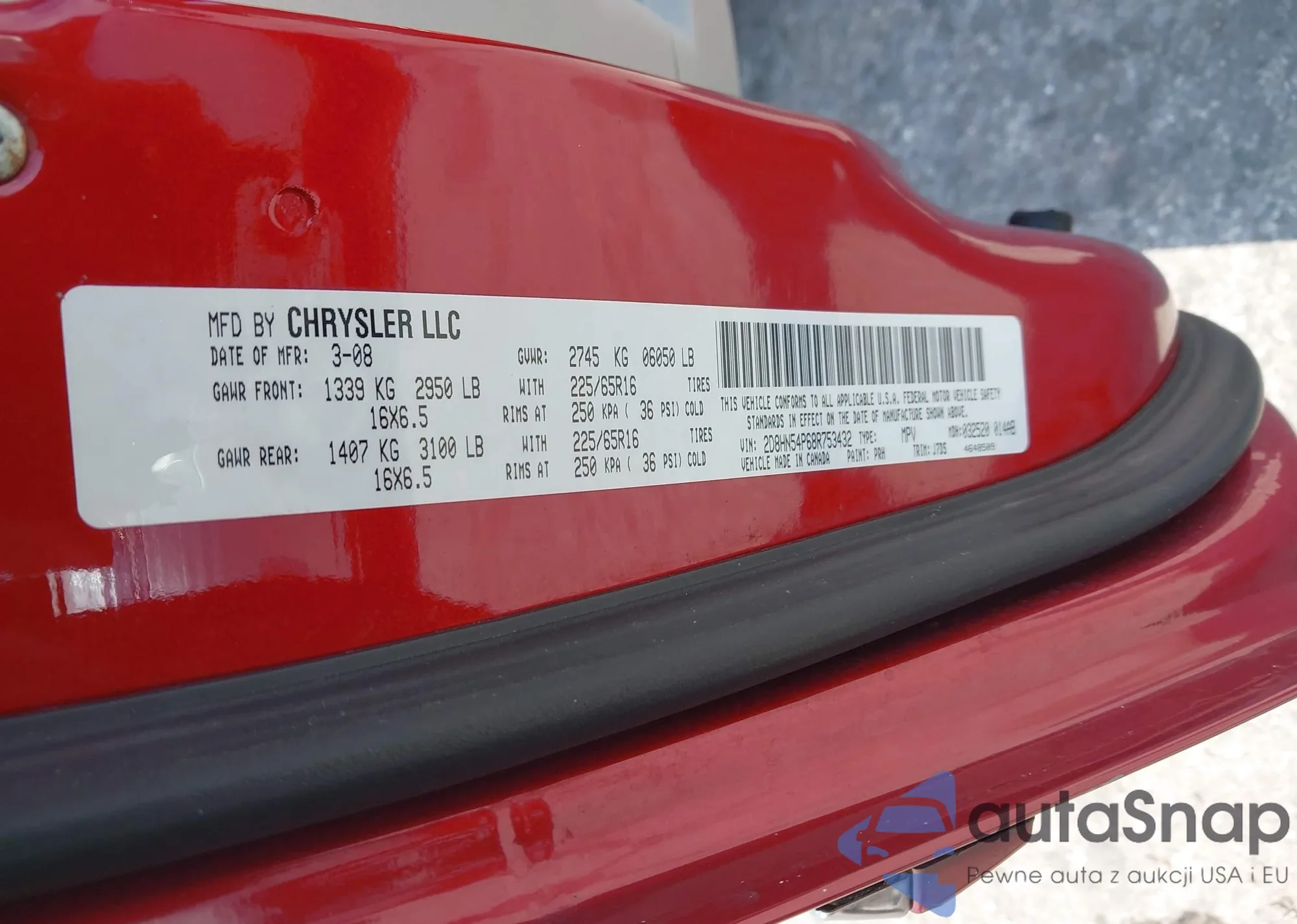 LOT: 42048109 VIN: WDDGF54XX8F064031