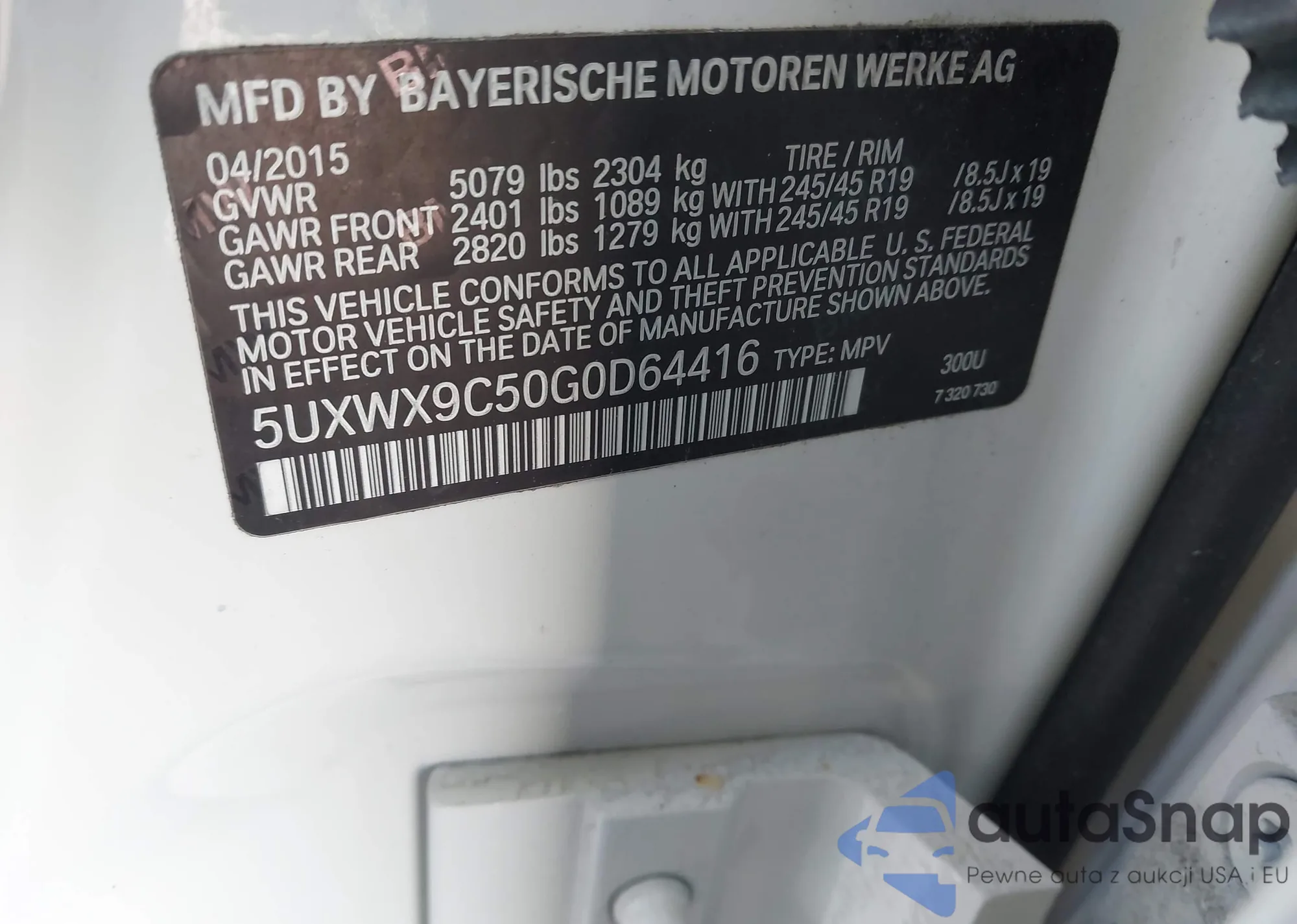 • VIN 5UXWX9C50G0D64416