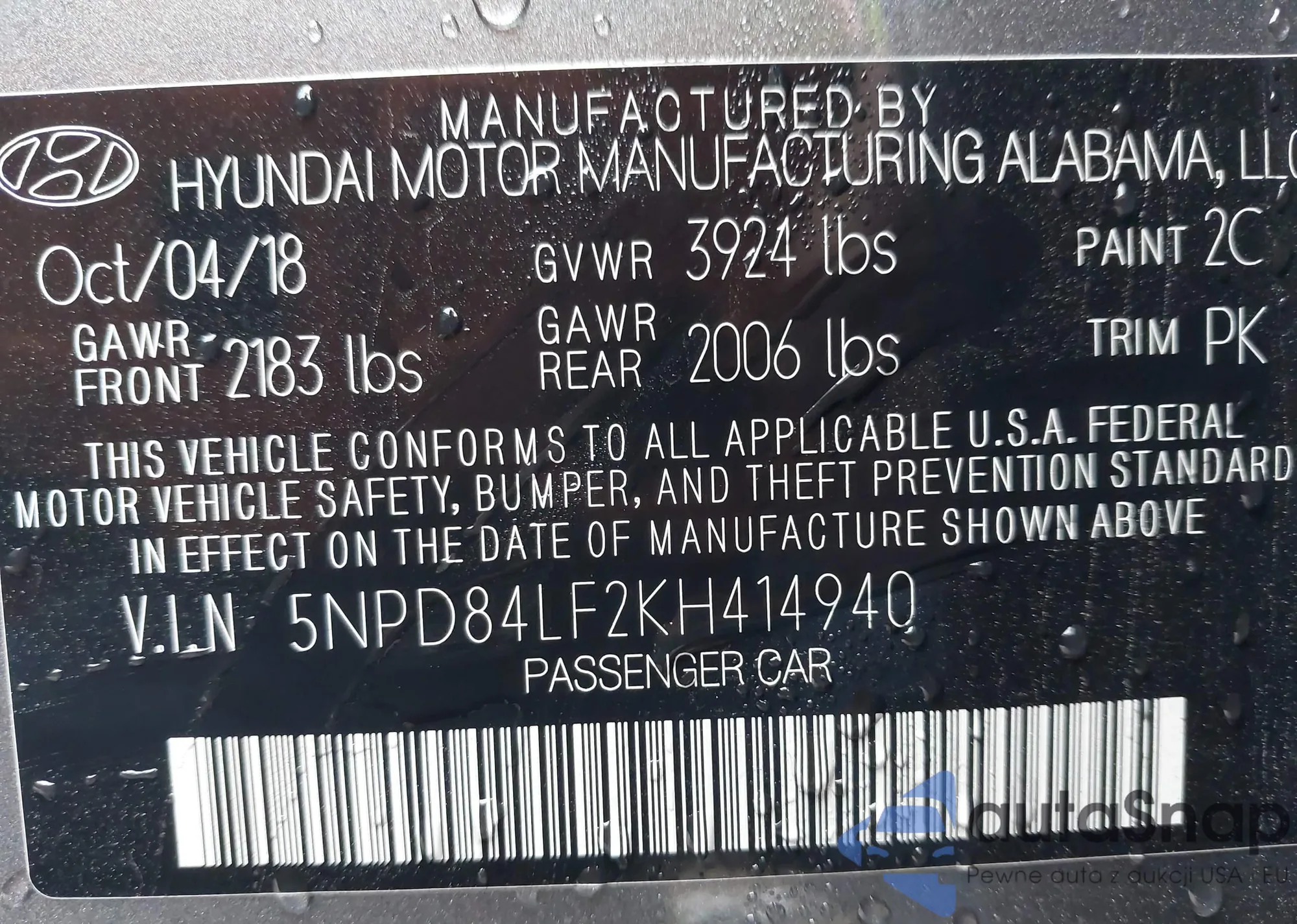 • VIN 5NPD84LF2KH414940