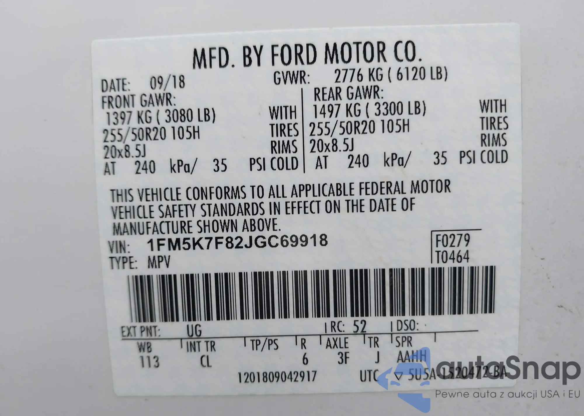• VIN 1FM5K7F82JGC69918