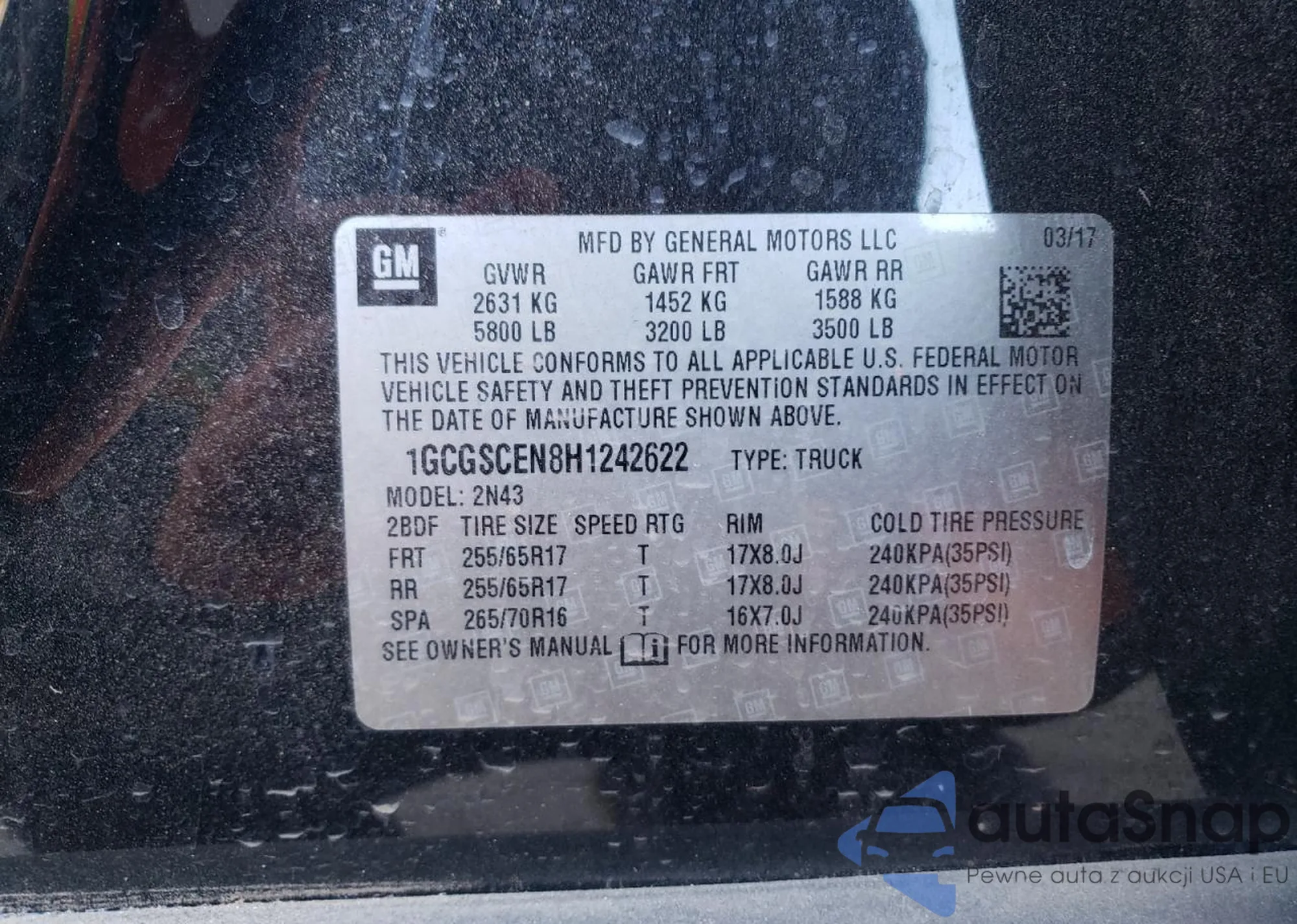 LOT: 87667325 VIN: 1GCGSCEN8H1242622