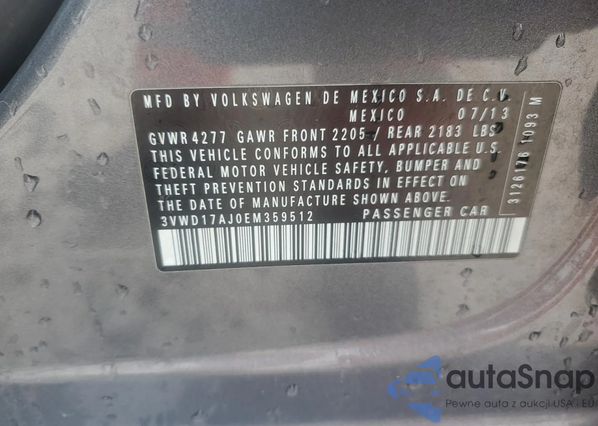 • VIN 7FARW2H83ME013171