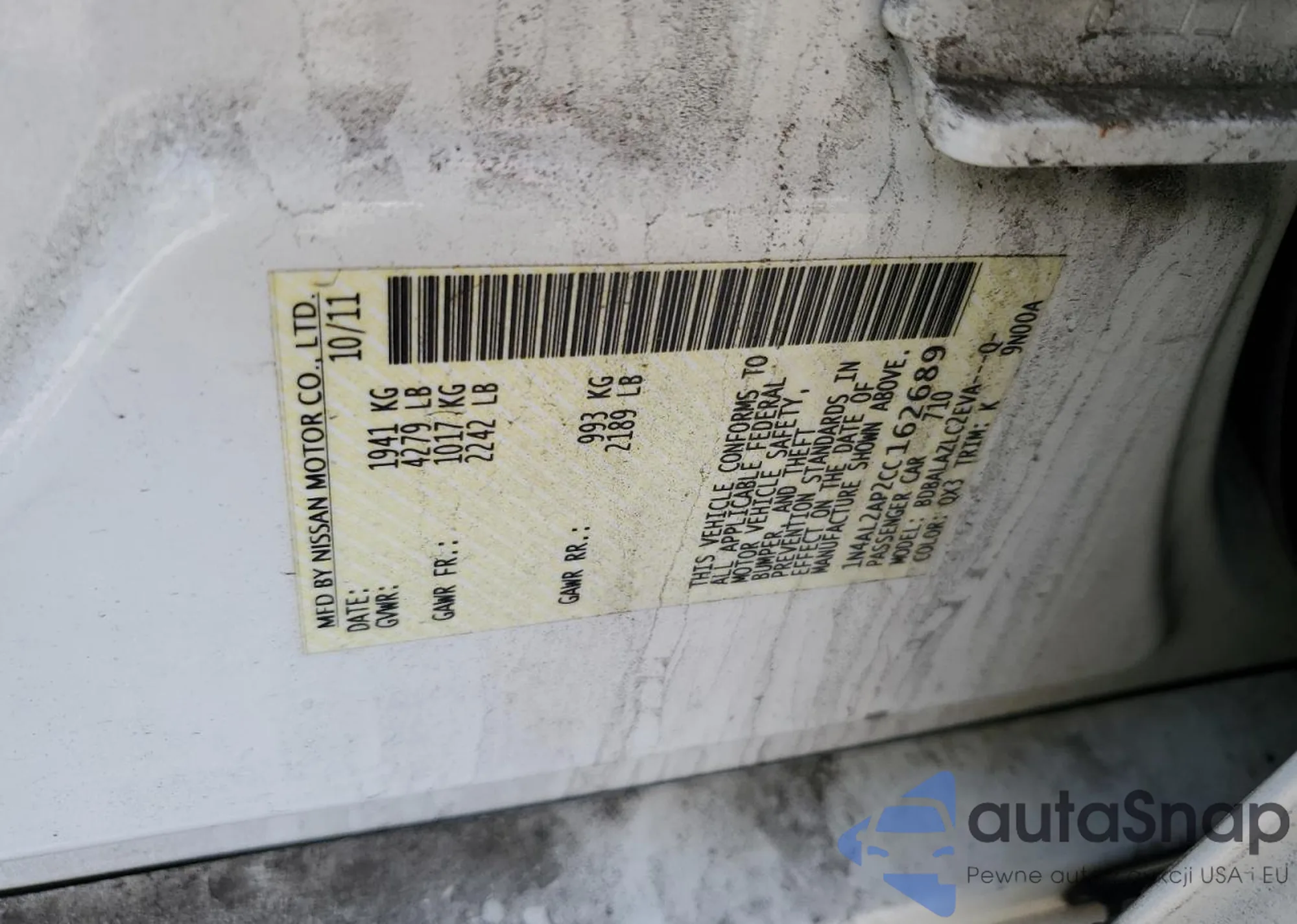• VIN 1N4AL2AP2CC162689