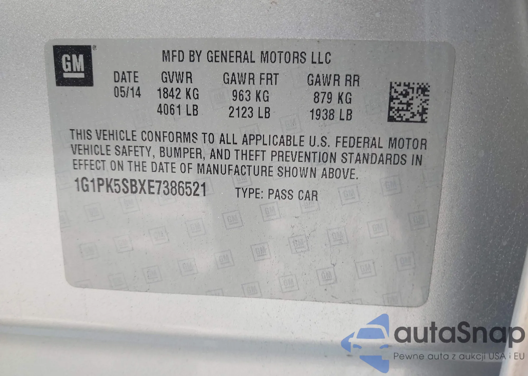 LOT: 41920372 VIN: 1G1PK5SBXE7386521
