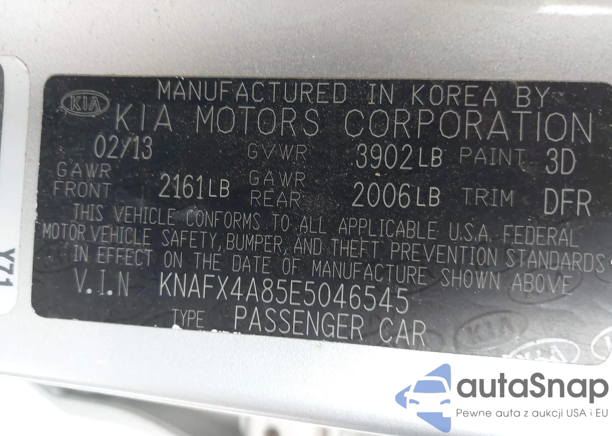 LOT: 42016340 VIN: KNAFX4A85E5046545