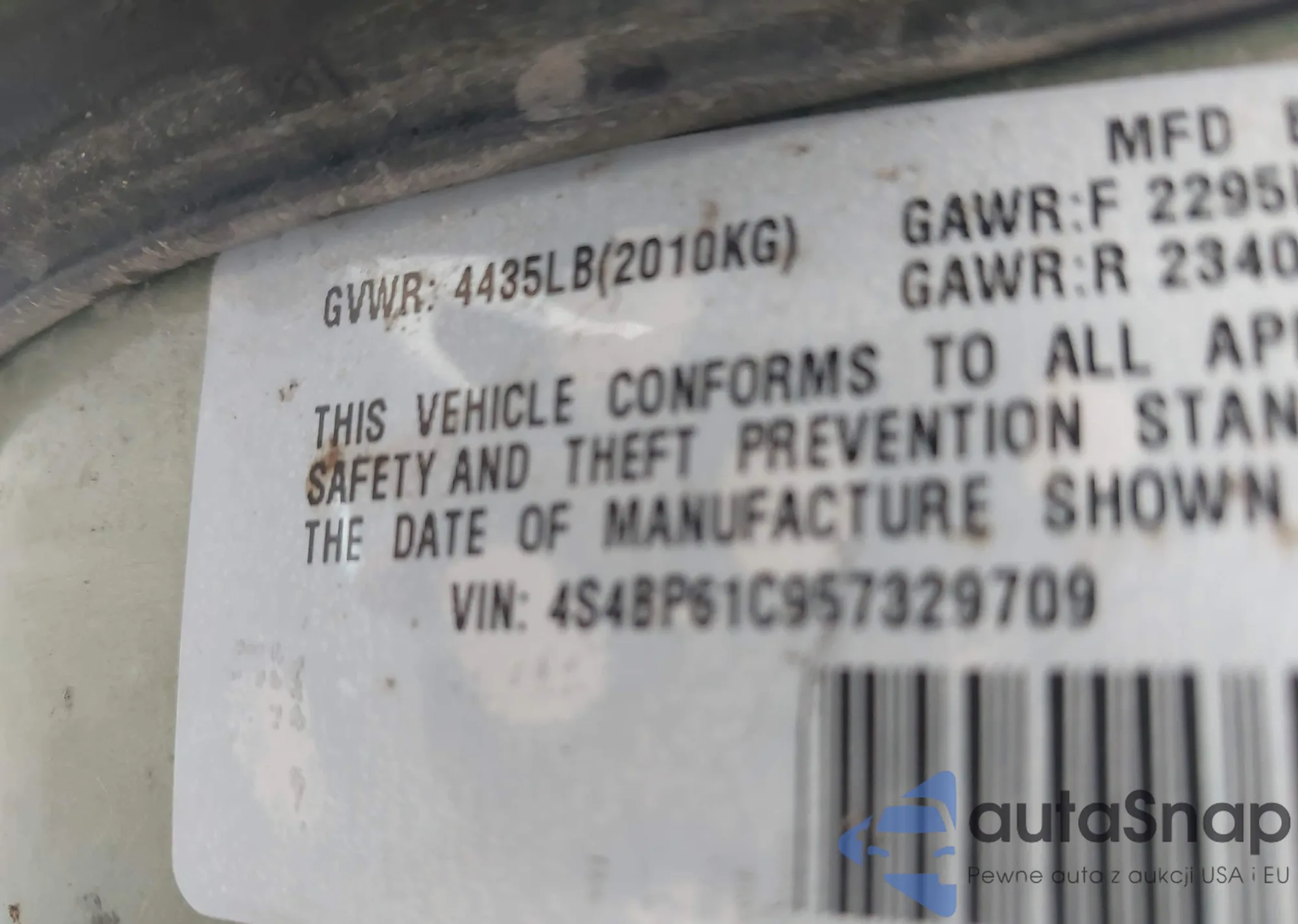 LOT: 39834347 VIN: 4S4BP61C957329709