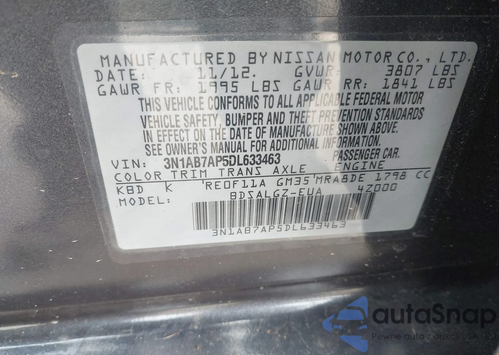 • VIN 3N1AB7AP5DL633463
