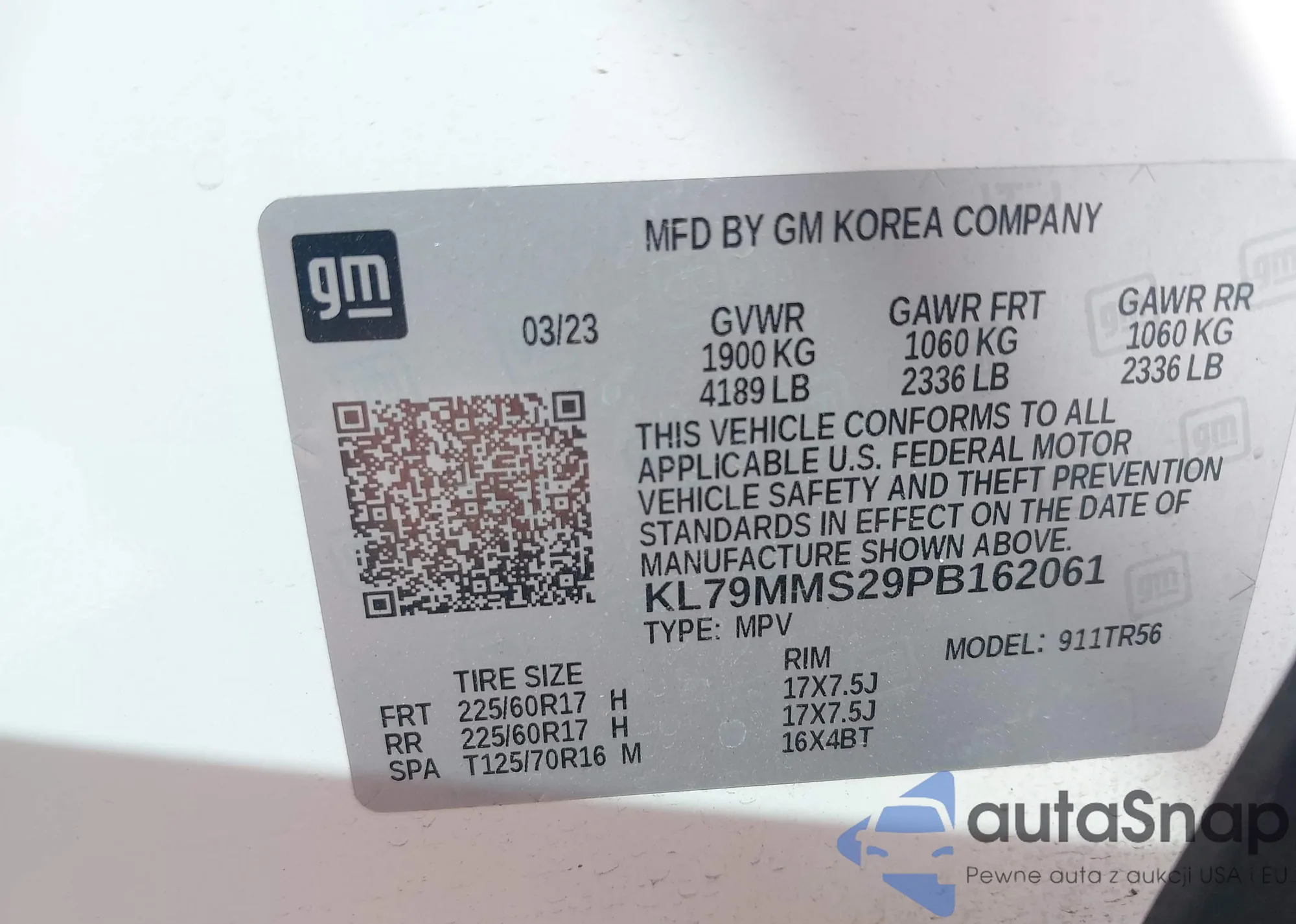• VIN KL79MMS29PB162061